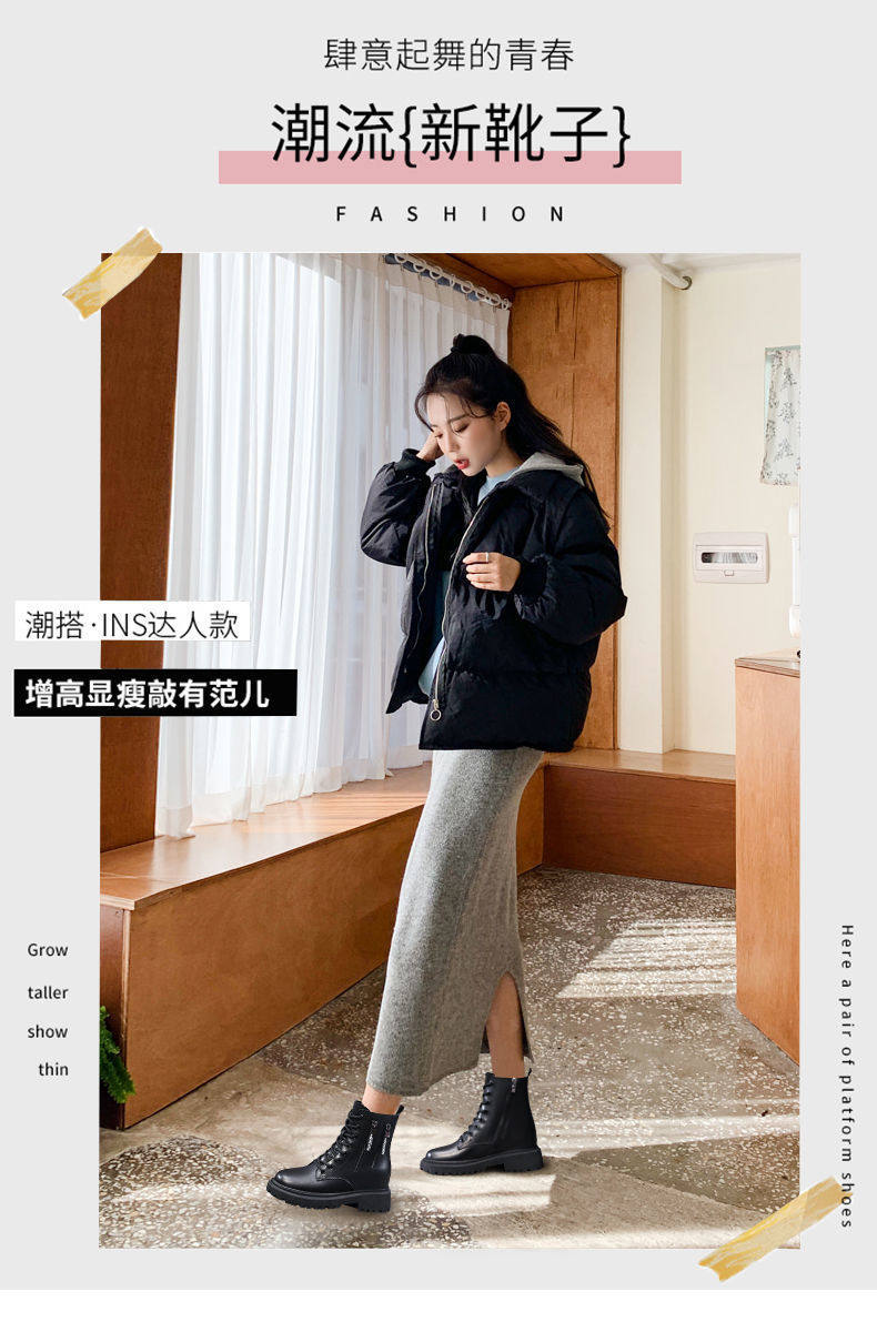 品牌撤櫃全牛皮真皮厚底馬丁靴女秋冬新款透氣英倫風靴子網紅短靴