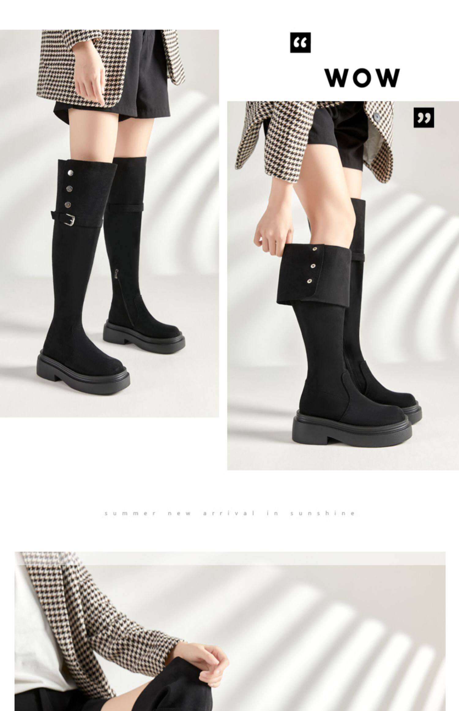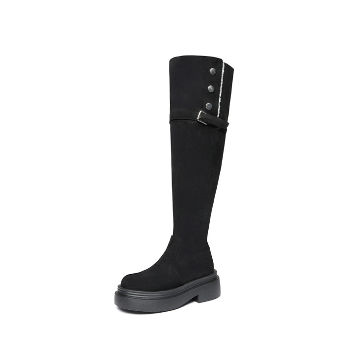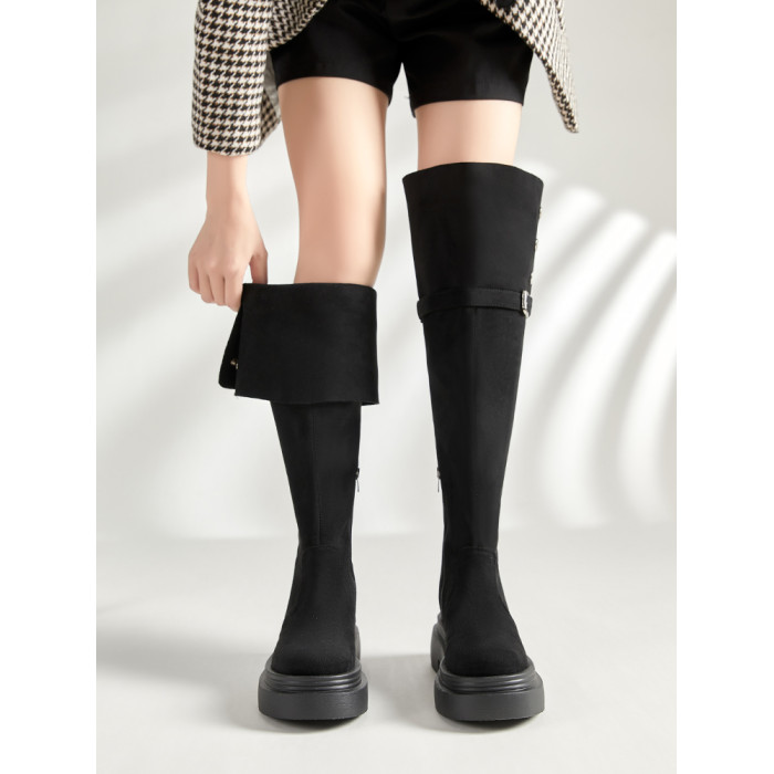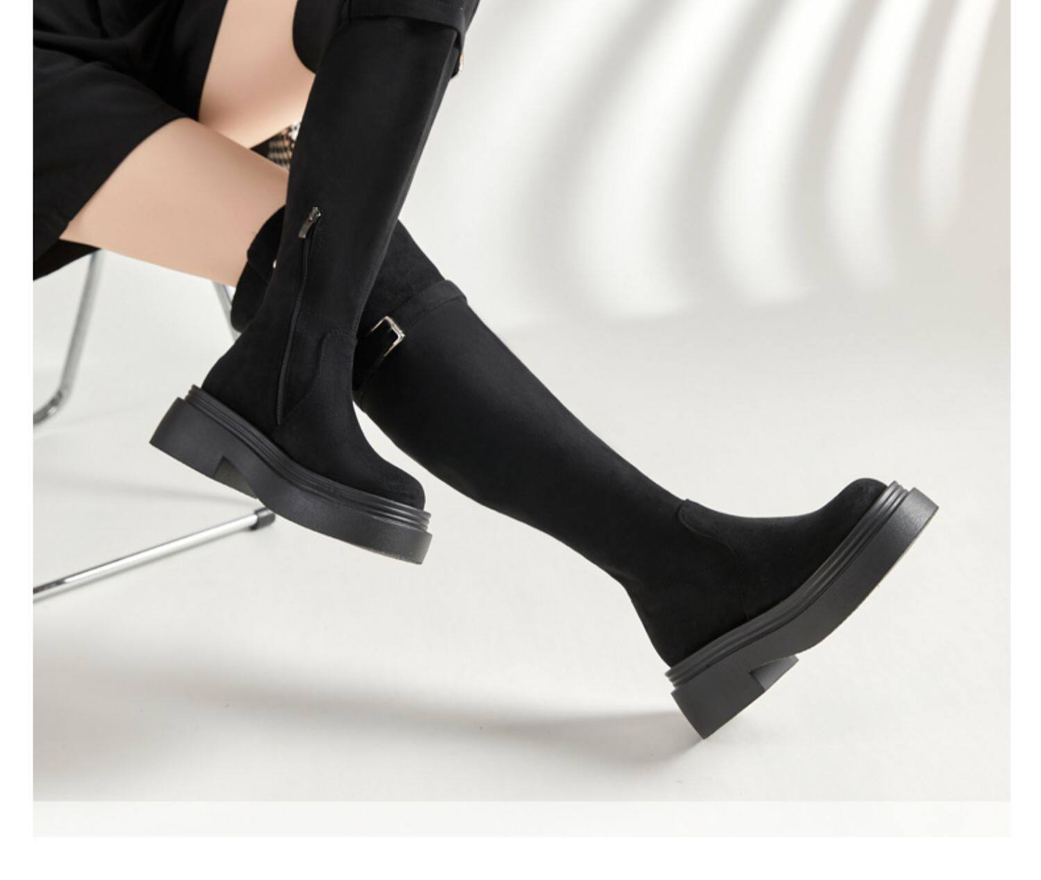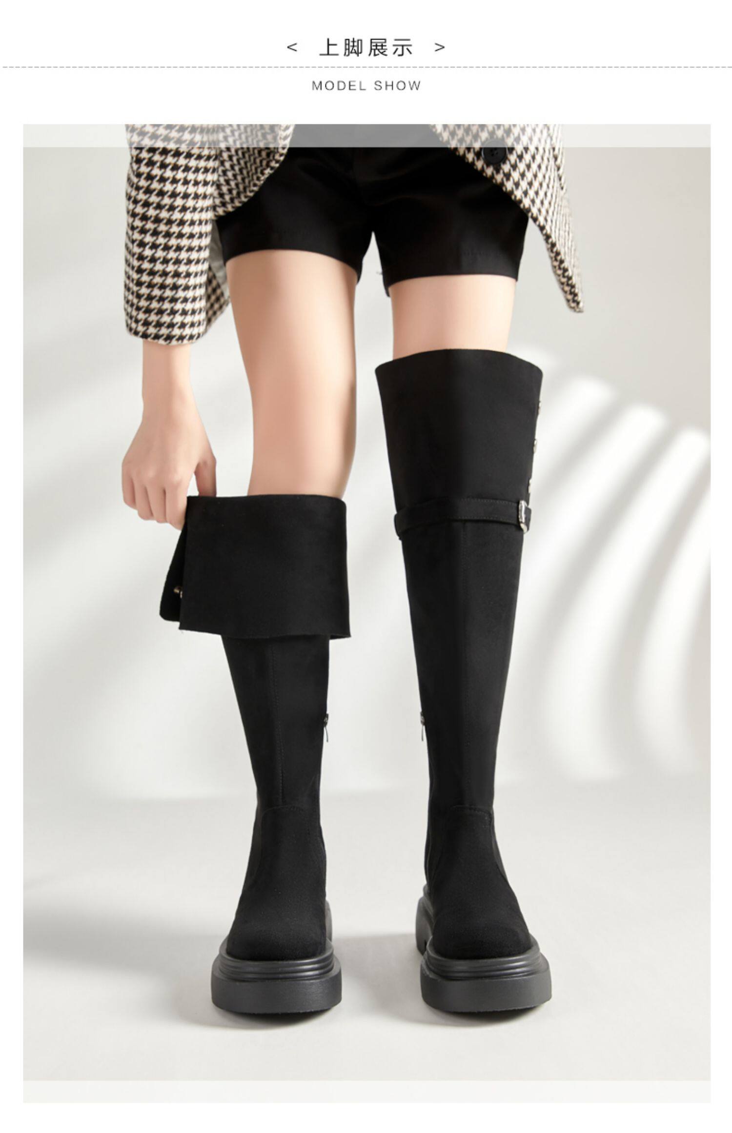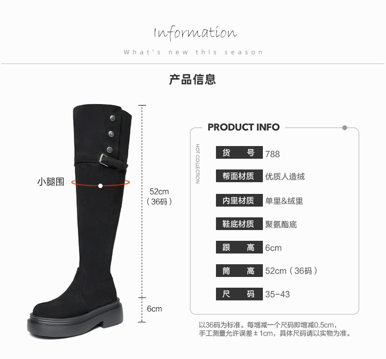 大筒圍過膝靴大碼女靴40-41-43秋冬粗腿胖mm長筒靴厚底兩穿彈力靴