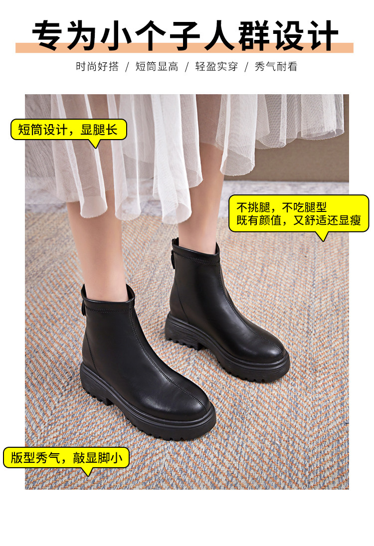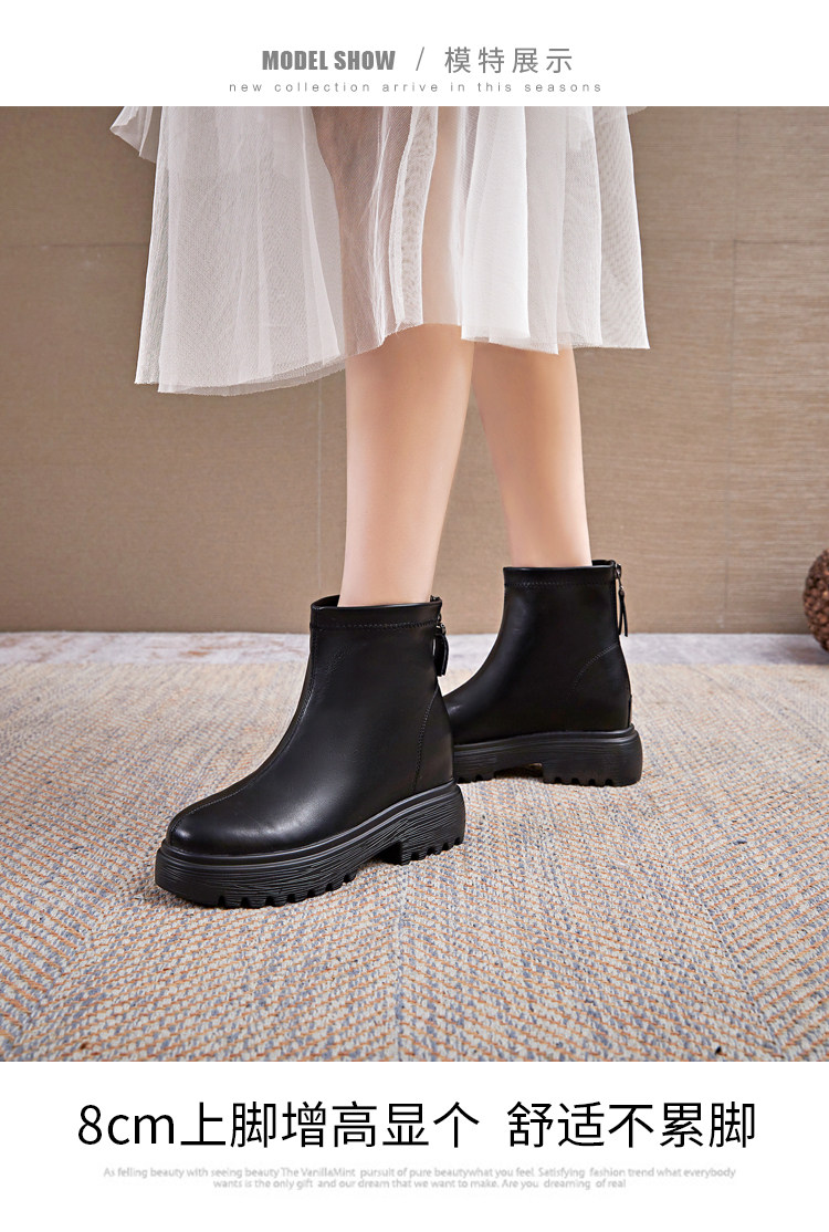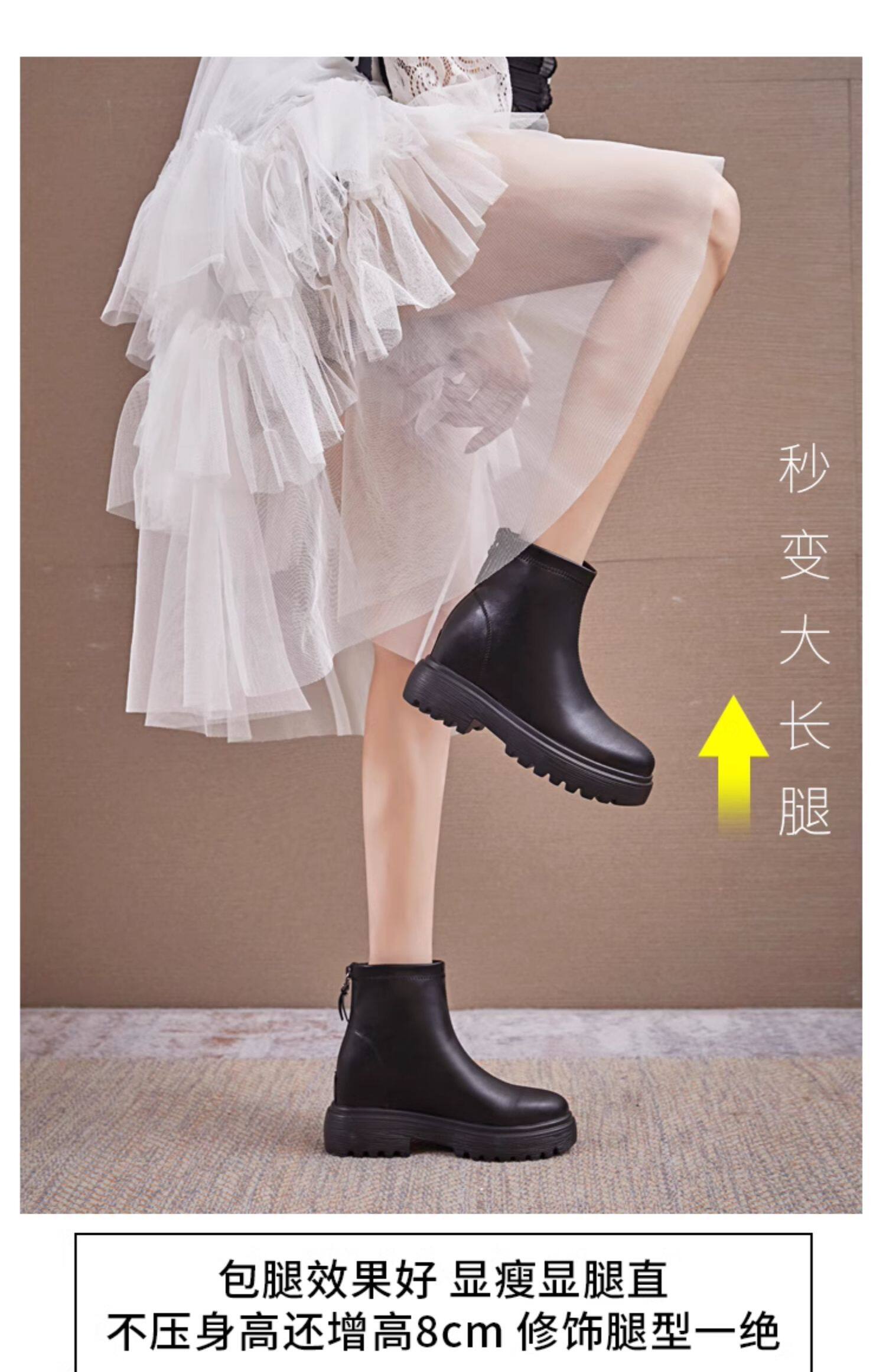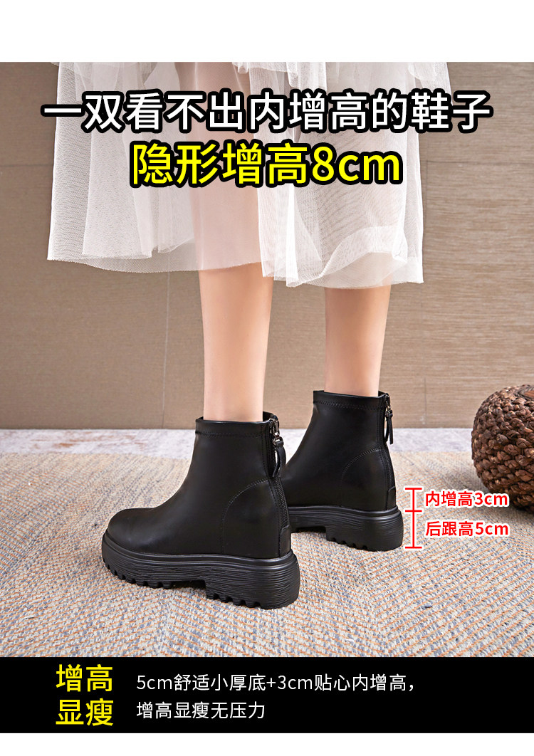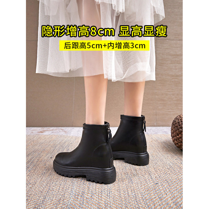 韓式瘦瘦靴內增高短靴女2024靴子厚底防水台小個子女鞋真皮馬丁靴