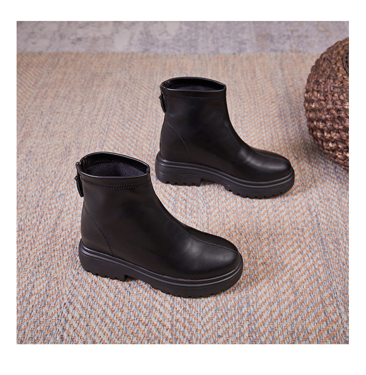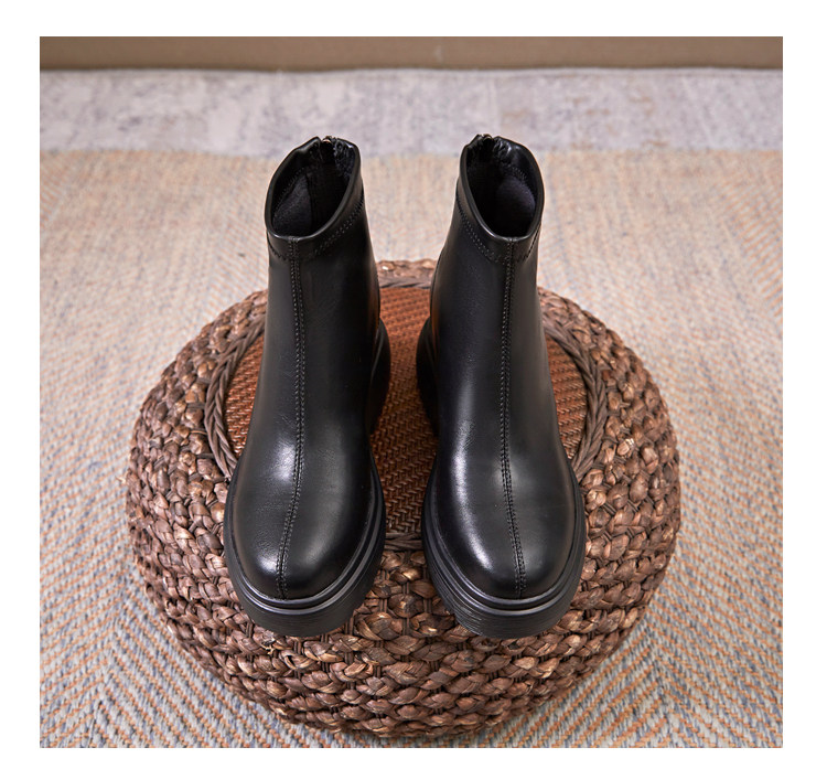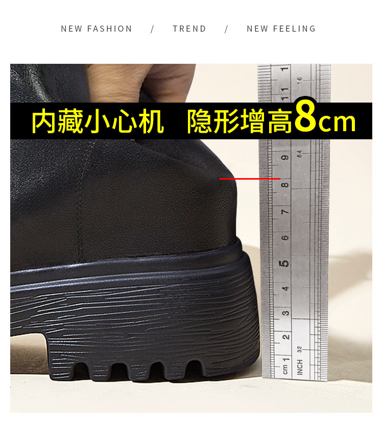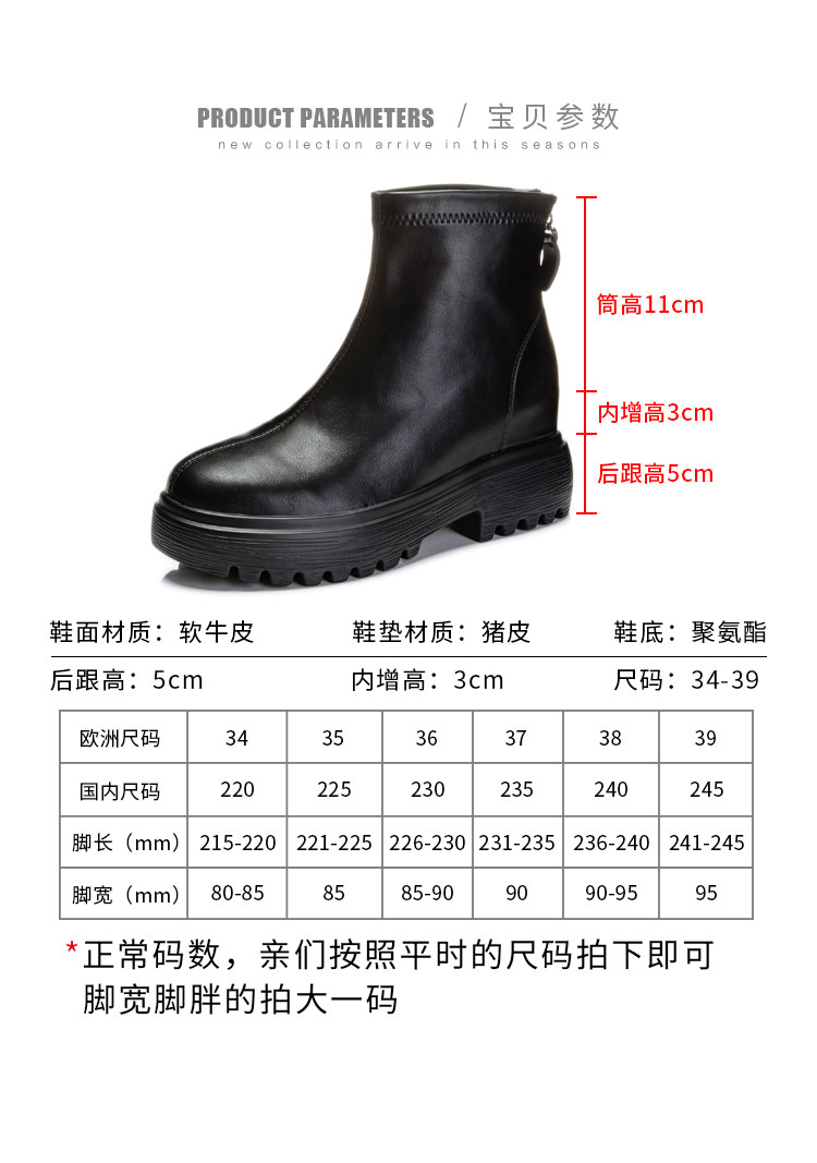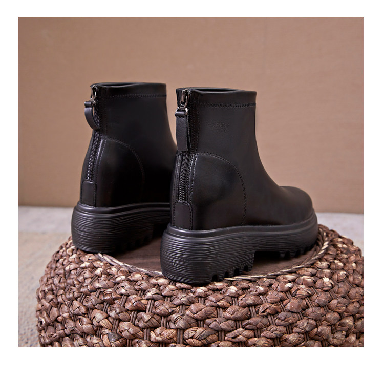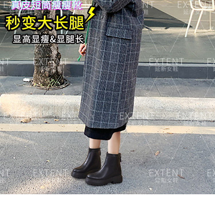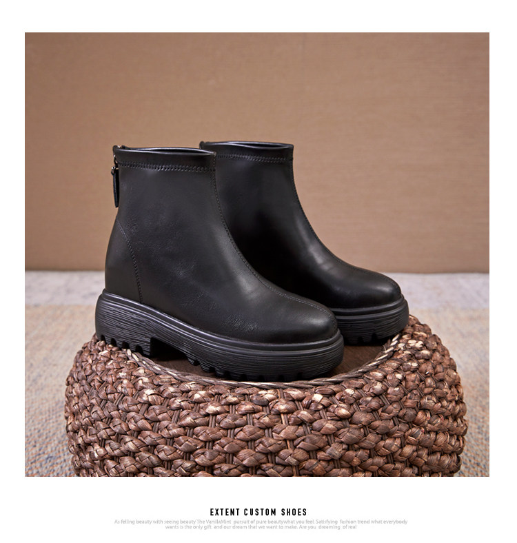 韓式瘦瘦靴內增高短靴女2024靴子厚底防水台小個子女鞋真皮馬丁靴
