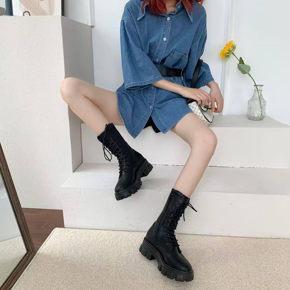中筒大碼馬丁靴女cos增高鞋厚底龐克機車騎士靴子女2024新款