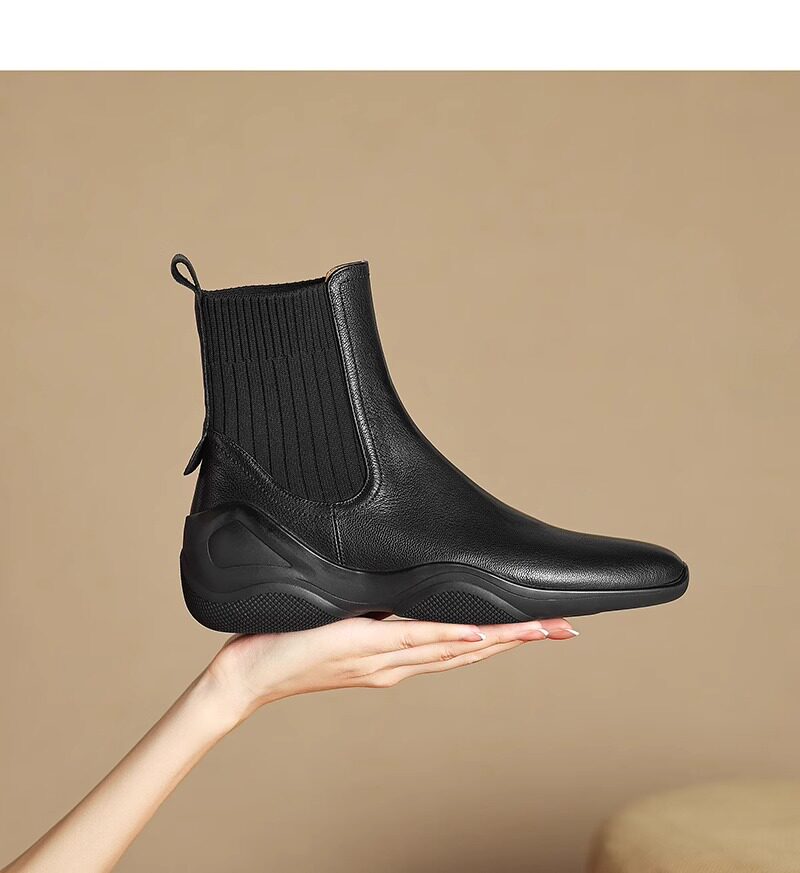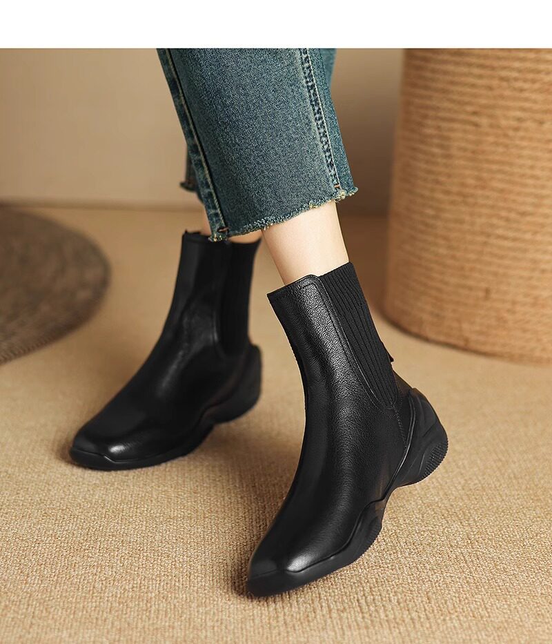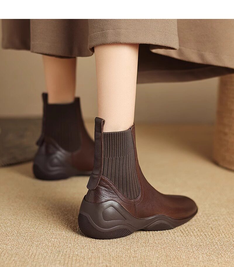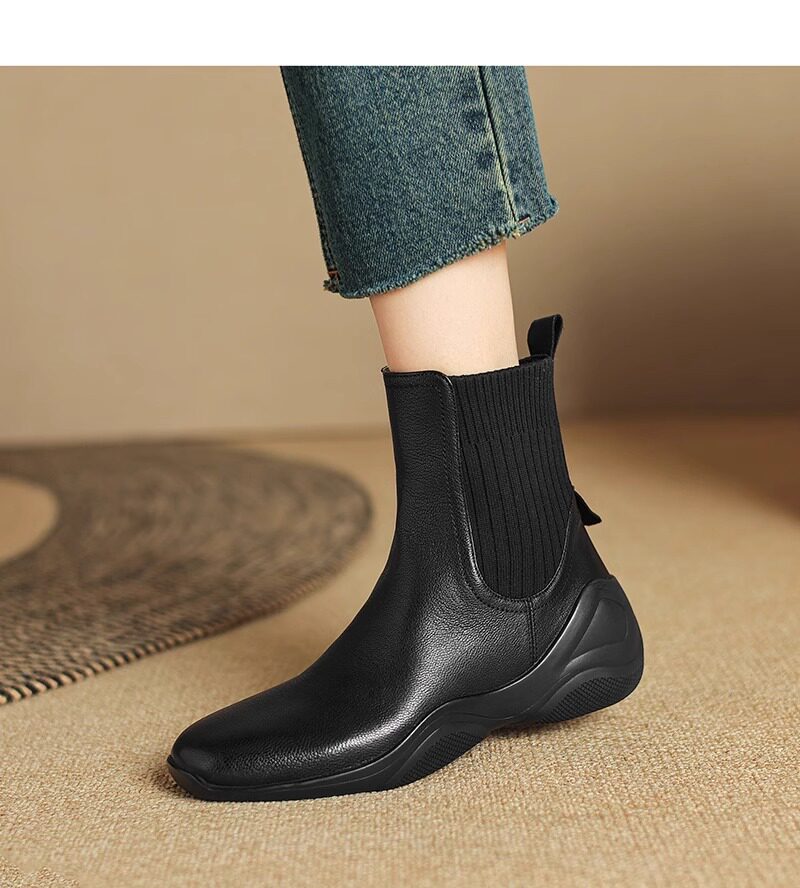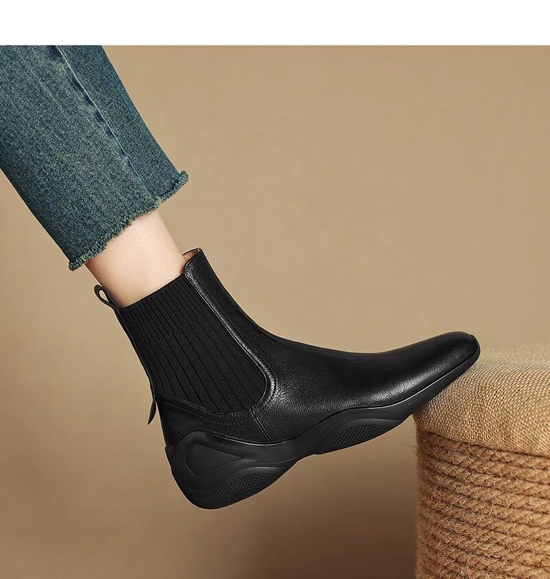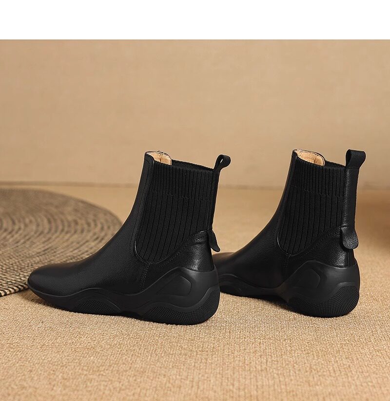 休閒運動底低跟短靴女秋冬新款復古英倫風厚底切爾西靴針織瘦瘦靴