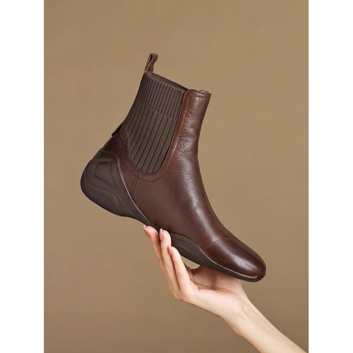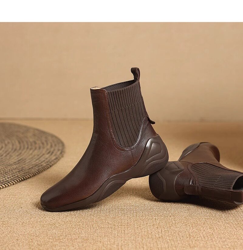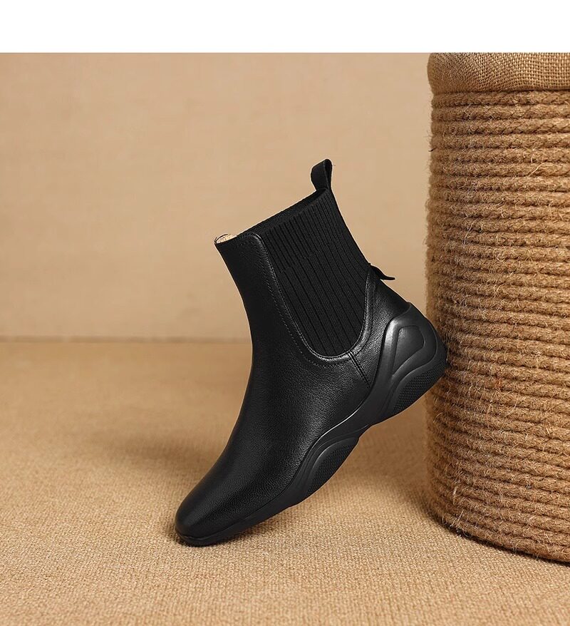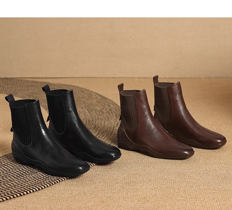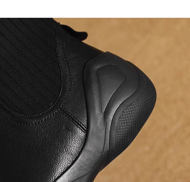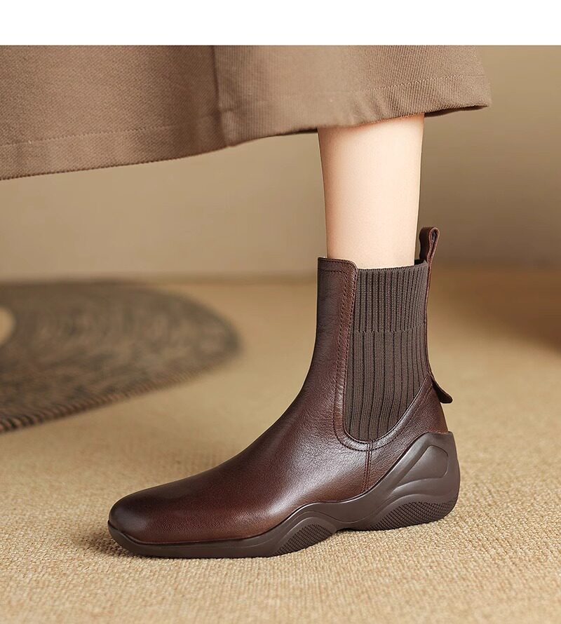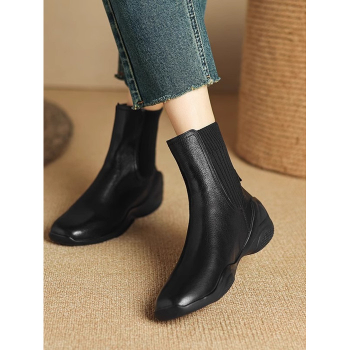 休閒運動底低跟短靴女秋冬新款復古英倫風厚底切爾西靴針織瘦瘦靴