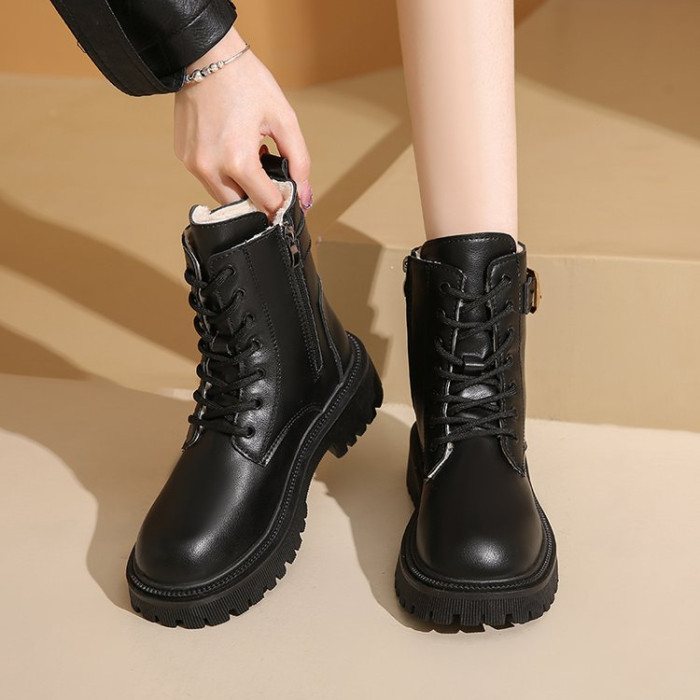 馬丁靴女款2024秋冬保暖舒適加絨靴子英倫風增高厚底機車靴大碼女