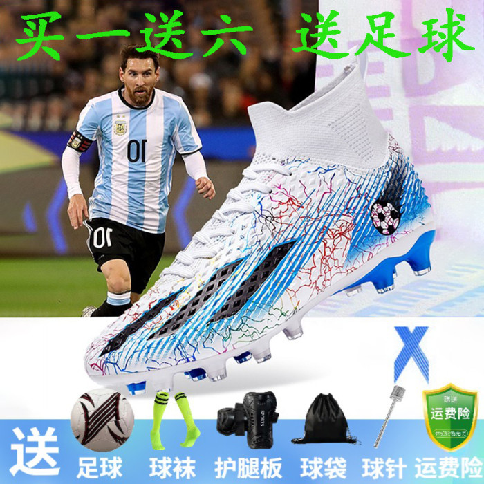 高幫梅西龍骨兒童足球鞋男童學生成人長釘AG碎釘TF訓練鞋男女獵鷹