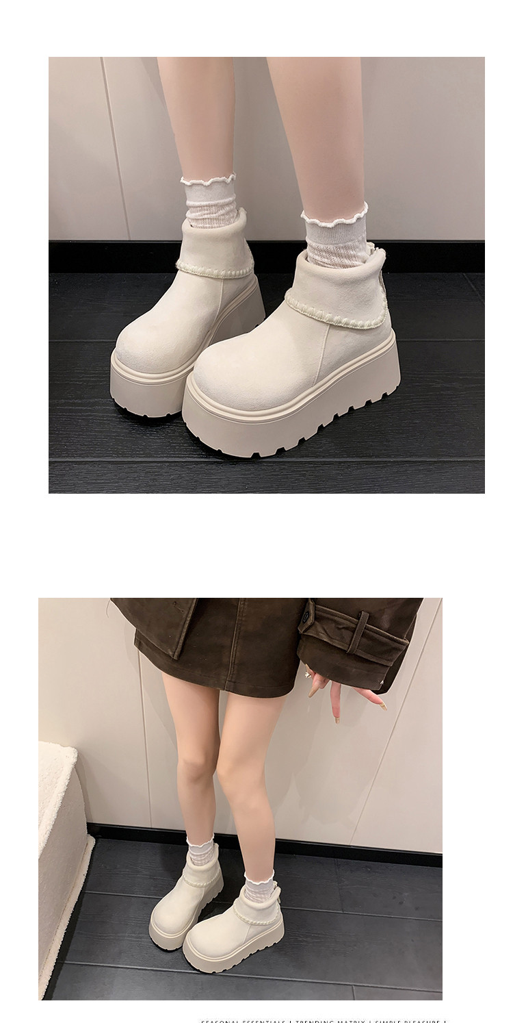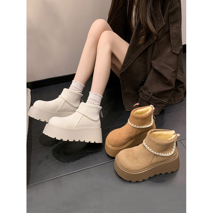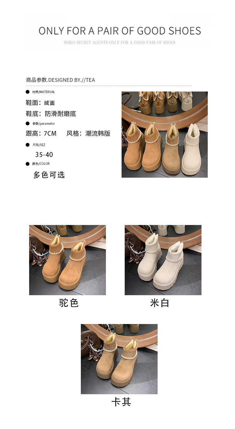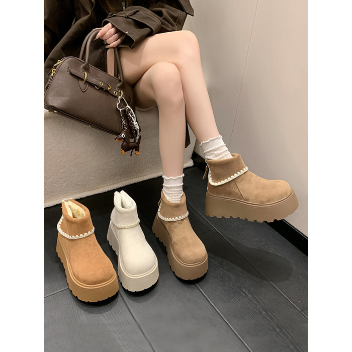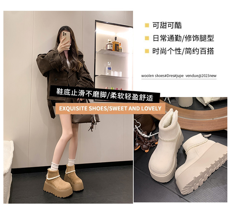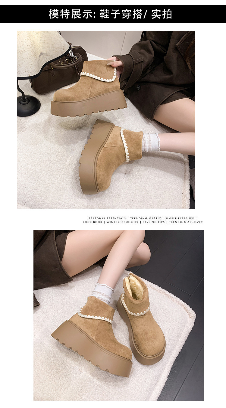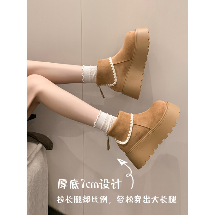 白色厚底增高雪地靴女2026秋冬季新款百搭勃肯短靴加絨加厚棉鞋子