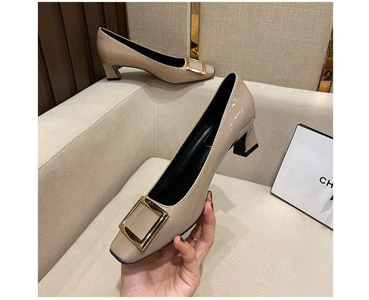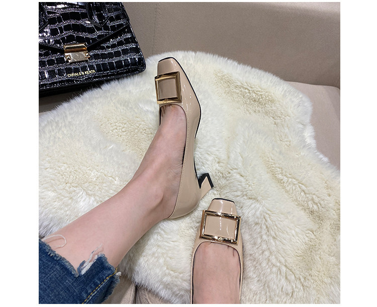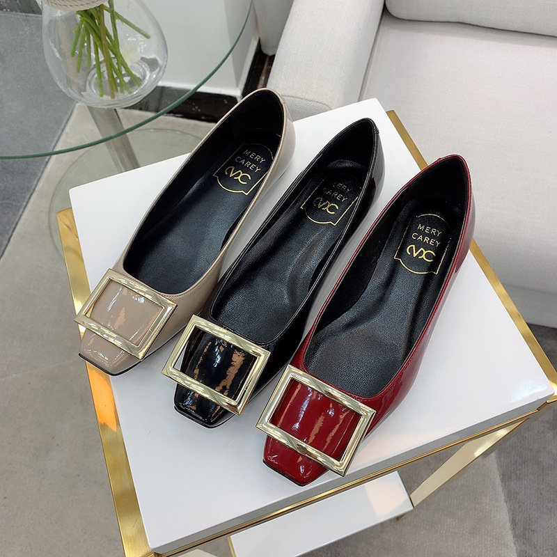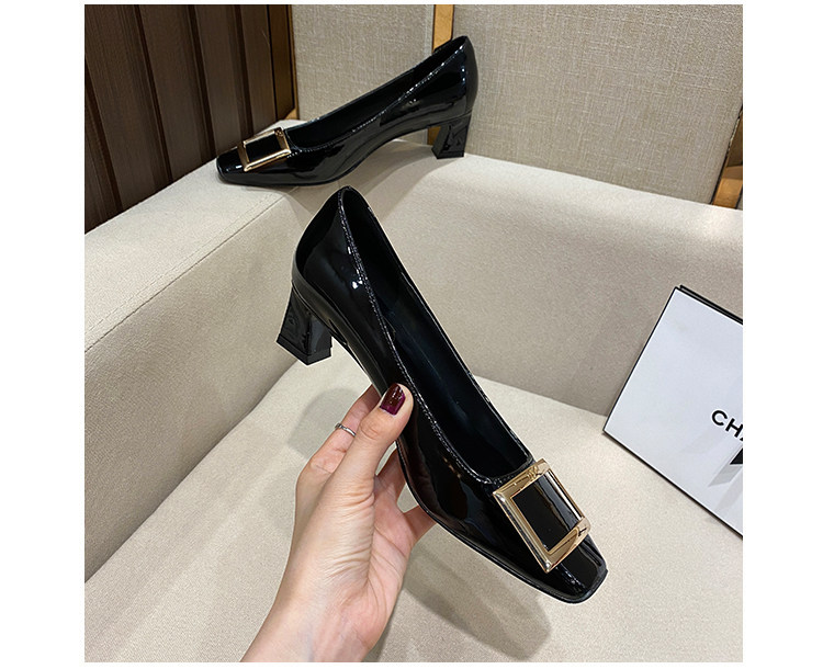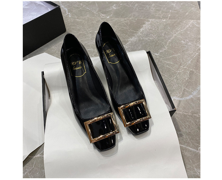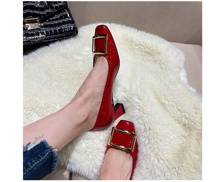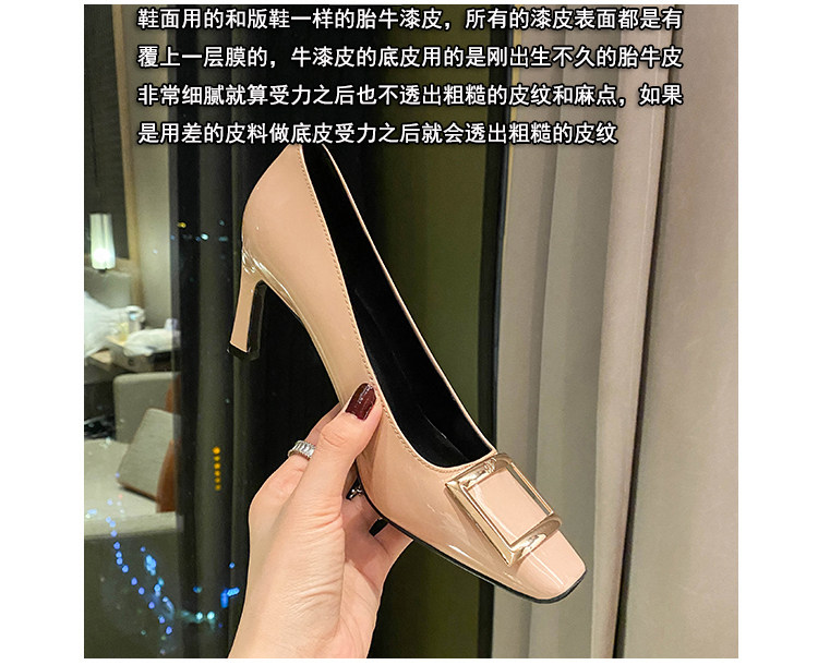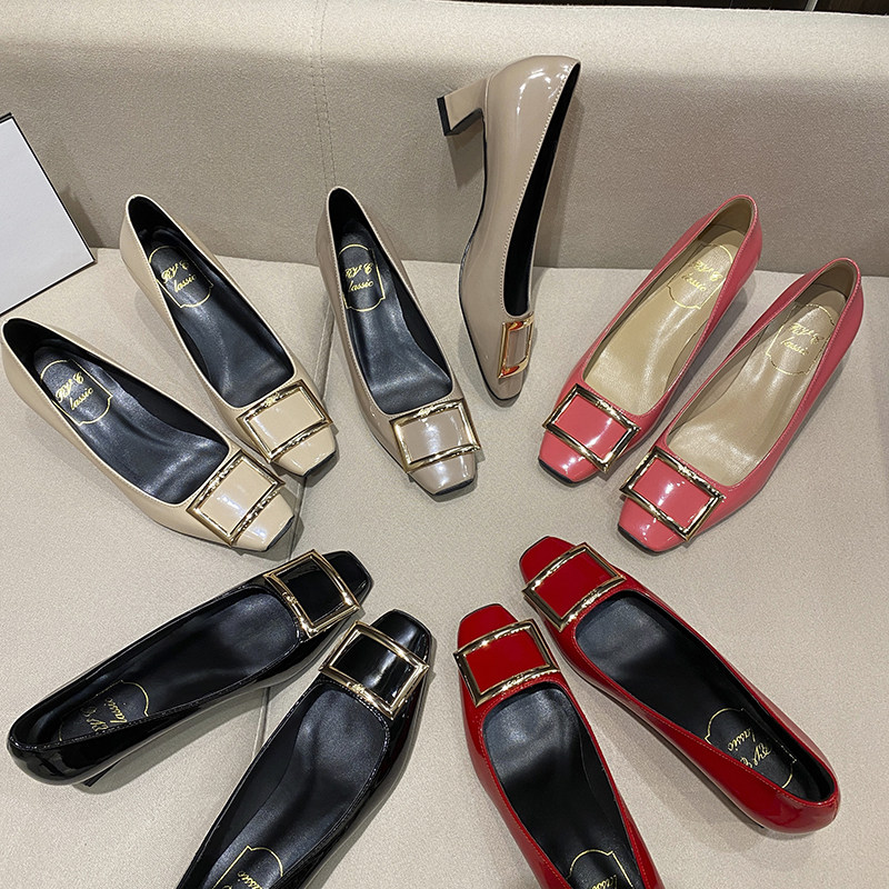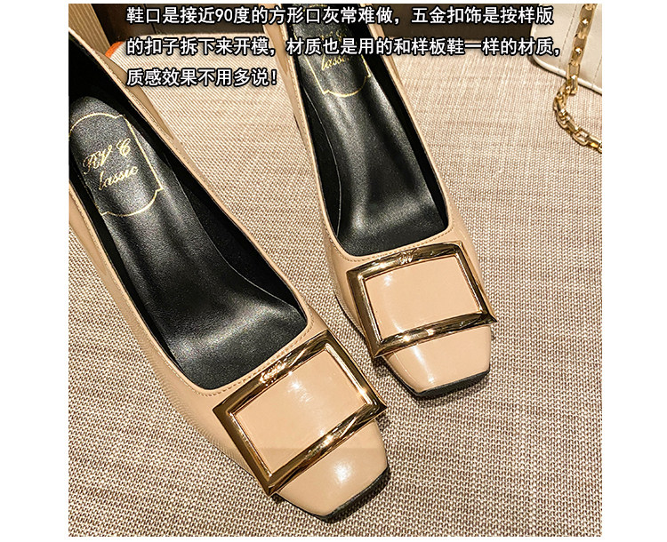 2025新款粗跟方釦單鞋網紅漆皮中跟方頭淺口舒適優雅婚鞋百搭工作