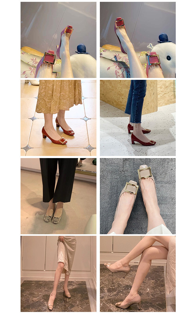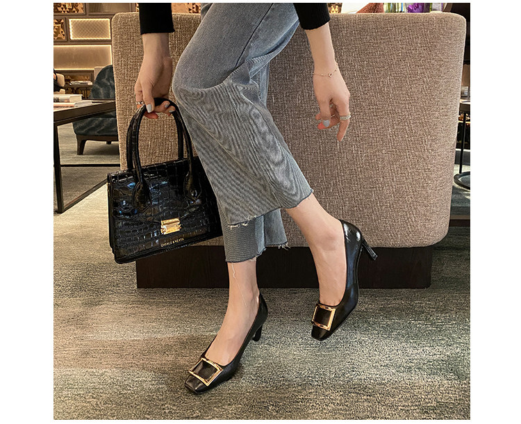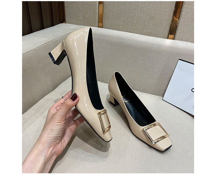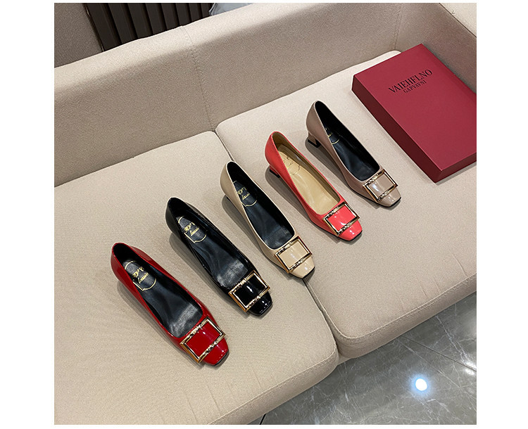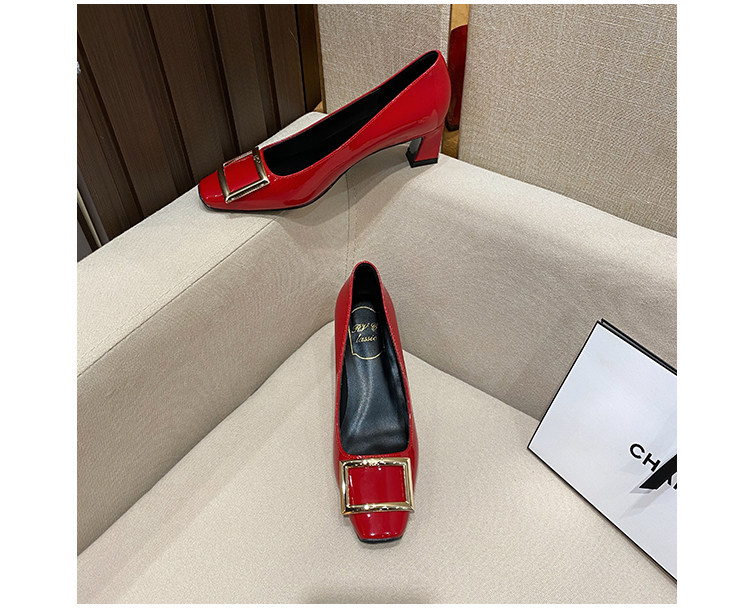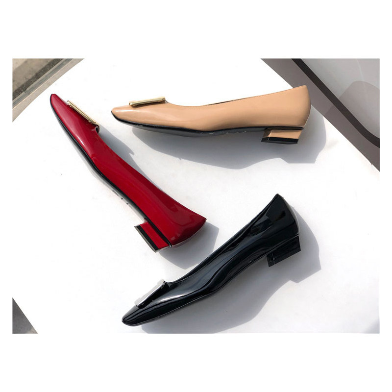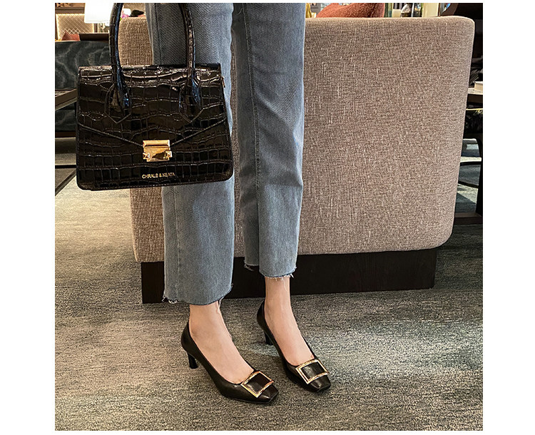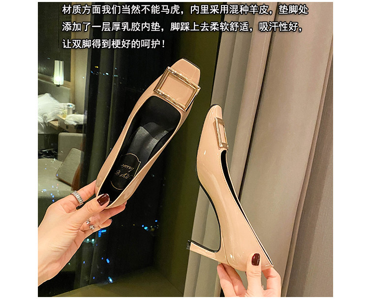 2025新款粗跟方釦單鞋網紅漆皮中跟方頭淺口舒適優雅婚鞋百搭工作