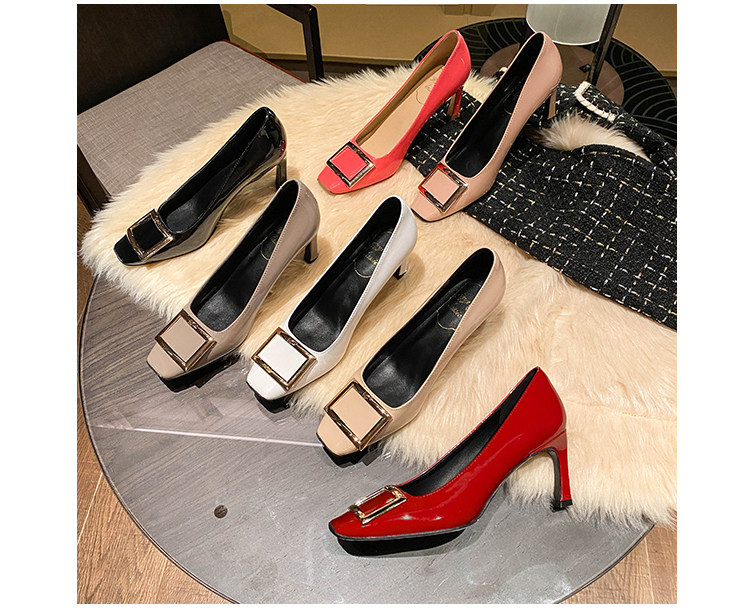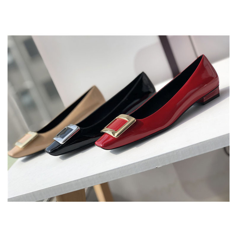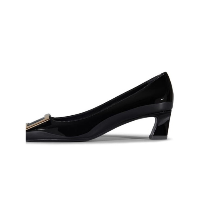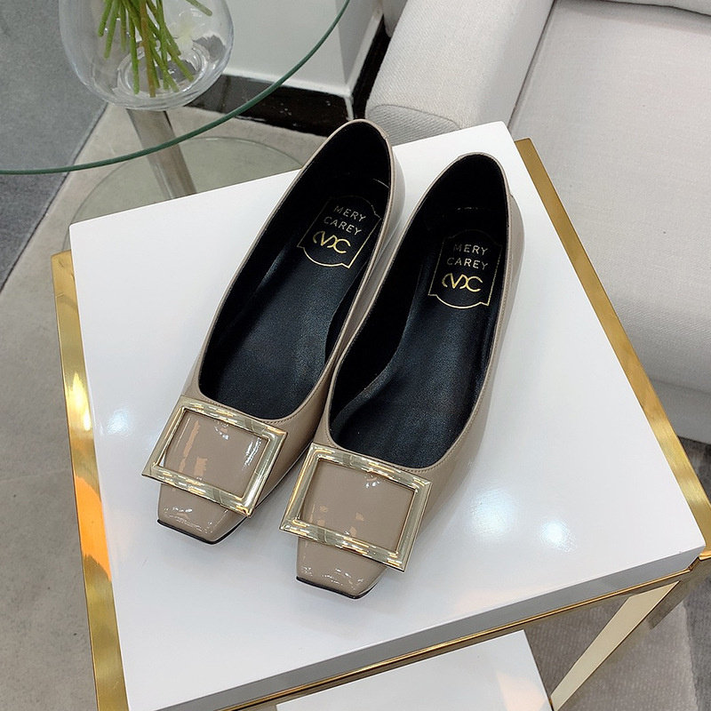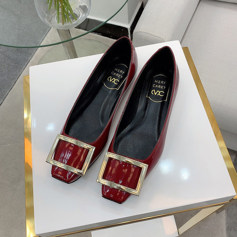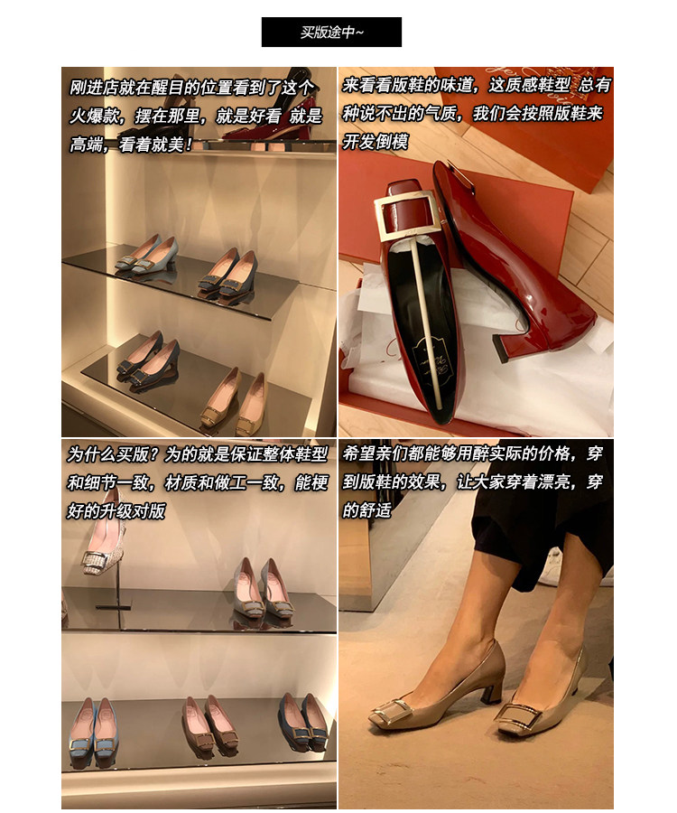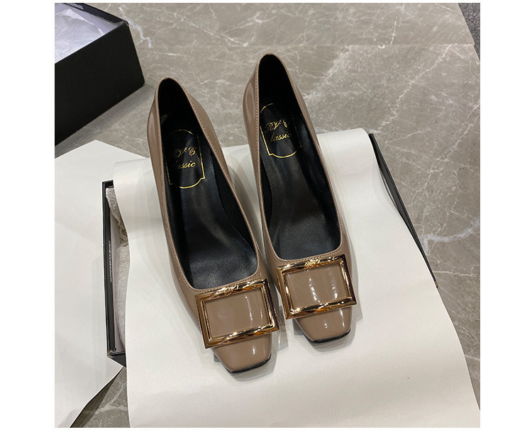 2025新款粗跟方釦單鞋網紅漆皮中跟方頭淺口舒適優雅婚鞋百搭工作
