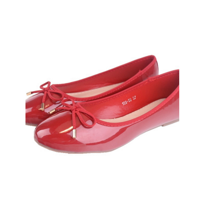 2025新款紅色圓頭淺口蝴蝶結漆皮芭蕾平底單鞋女休閒鞋大碼女鞋