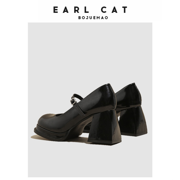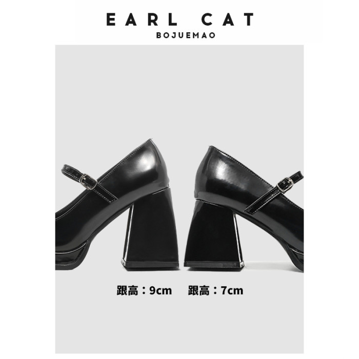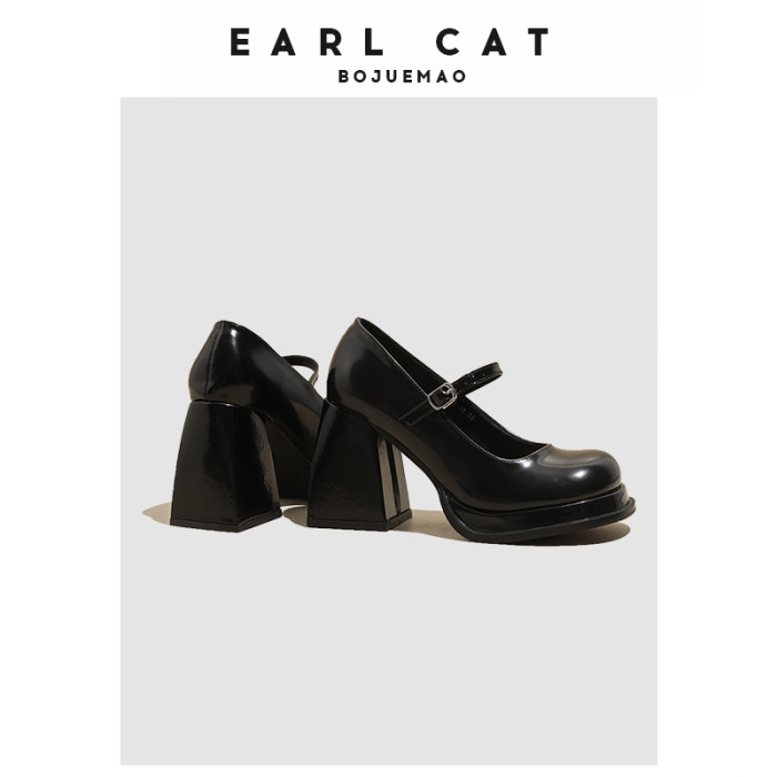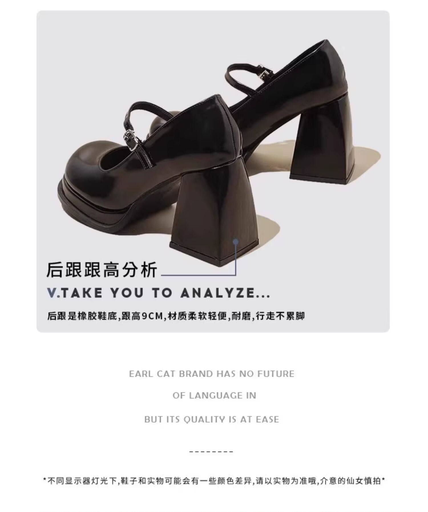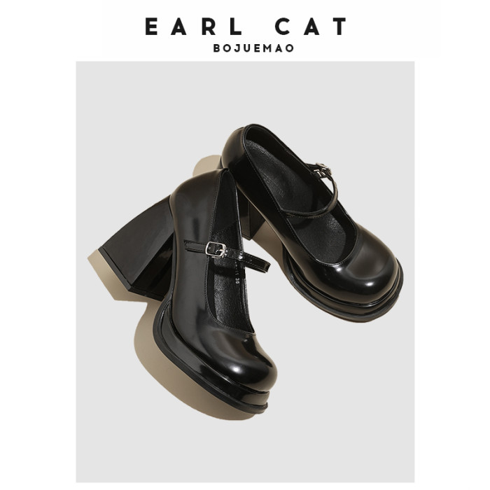 伯爵貓增高跟瑪麗珍鞋女2026春秋新款粗跟jk單鞋黑色真皮小皮鞋子
