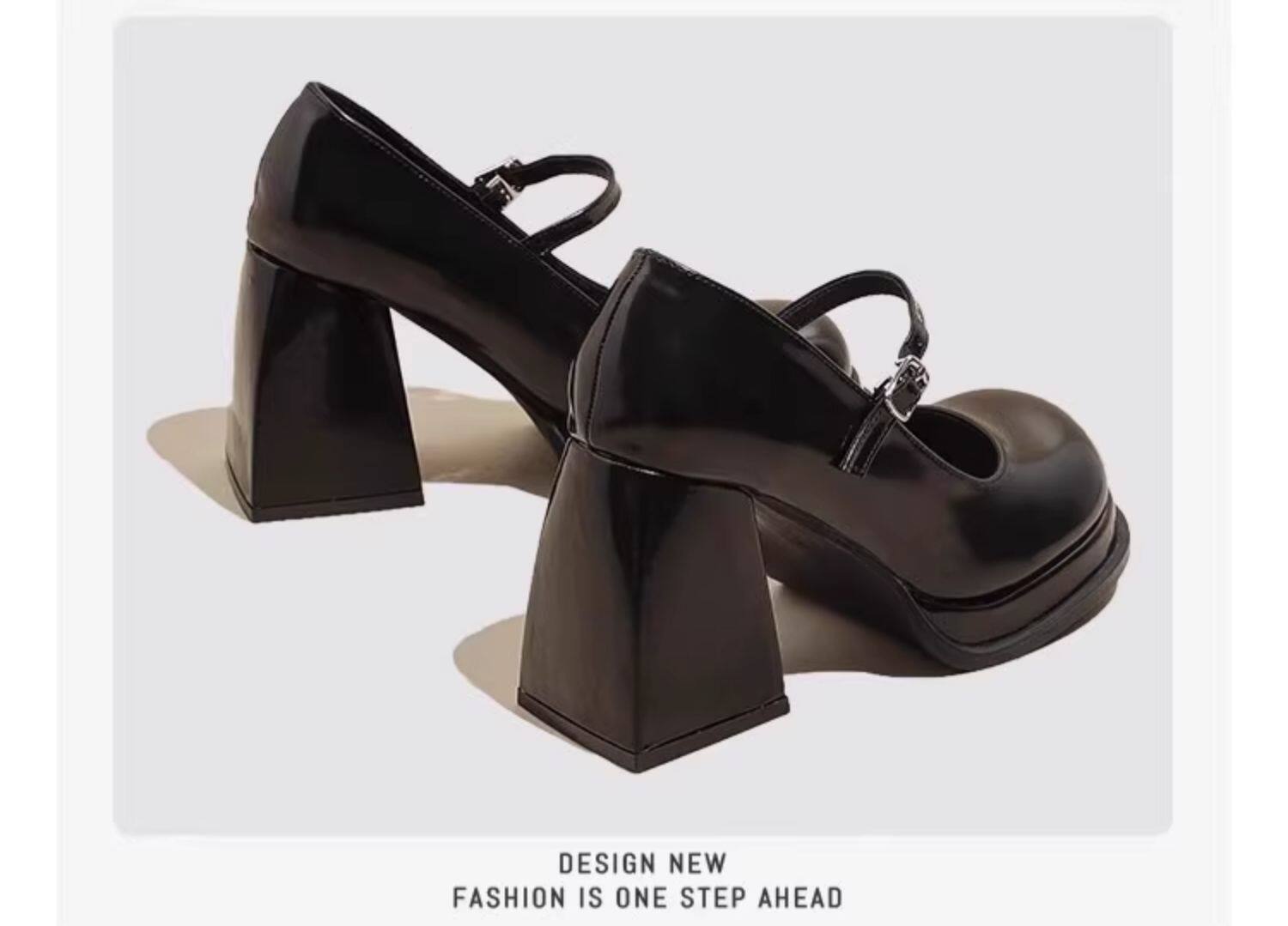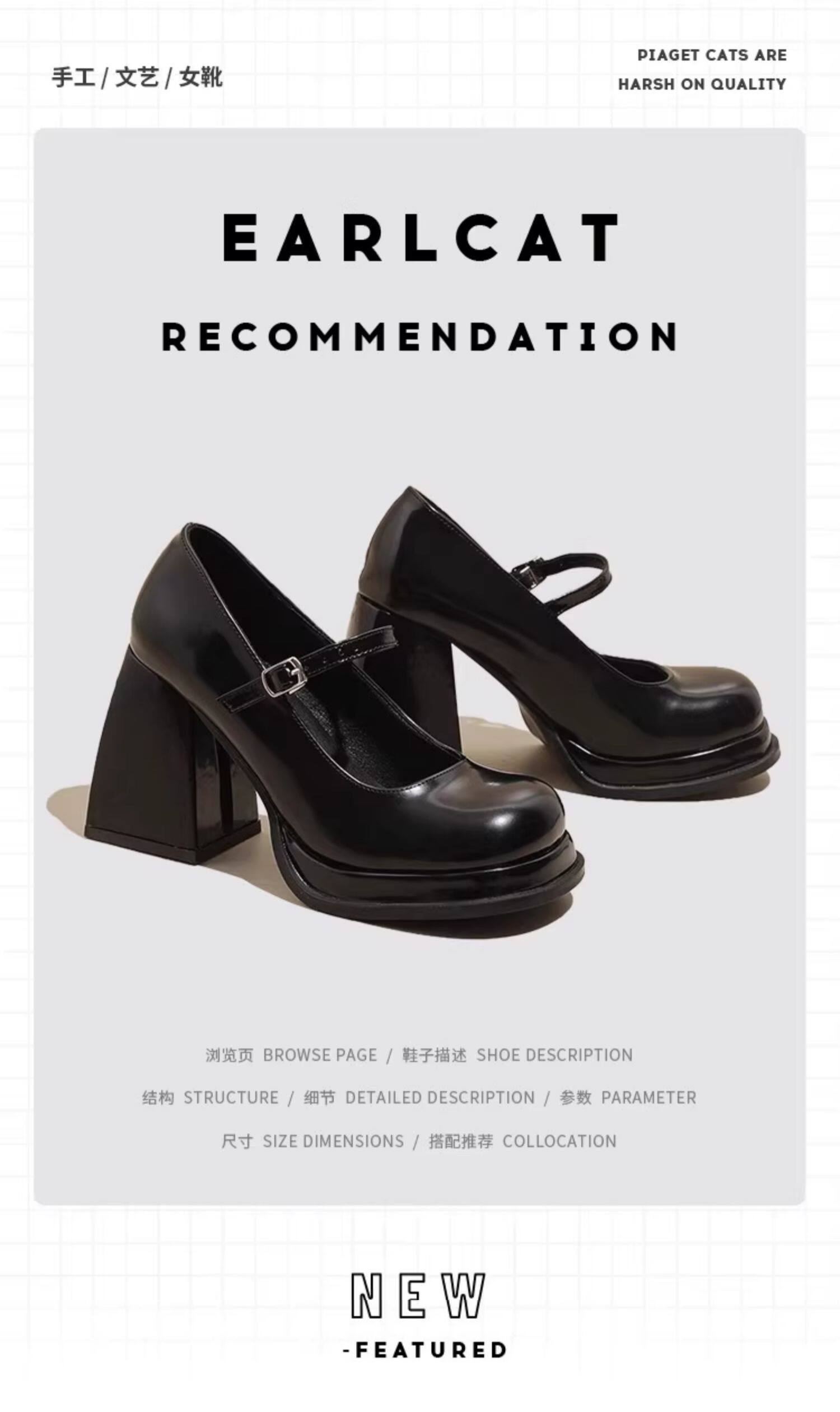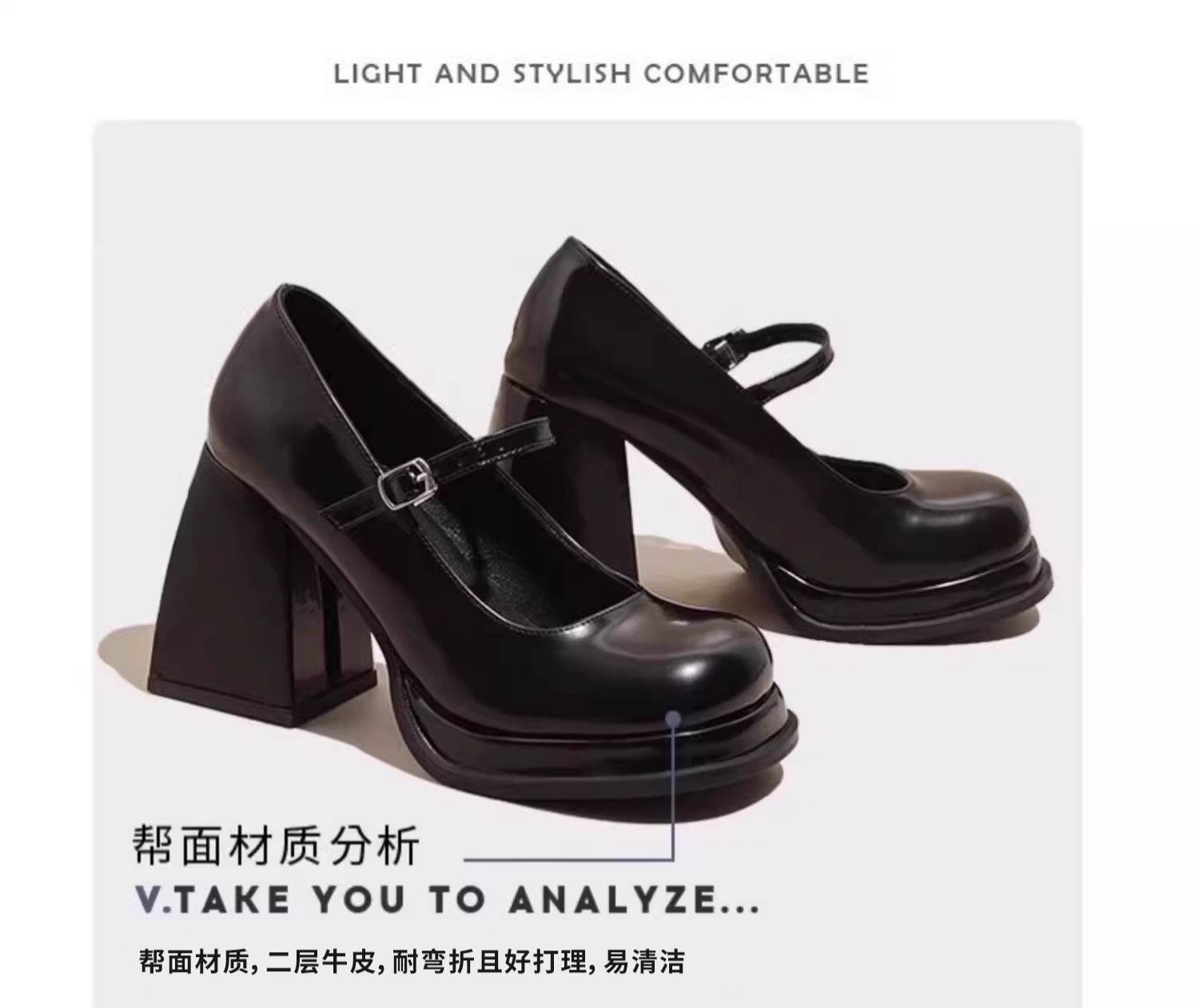 伯爵貓增高跟瑪麗珍鞋女2026春秋新款粗跟jk單鞋黑色真皮小皮鞋子