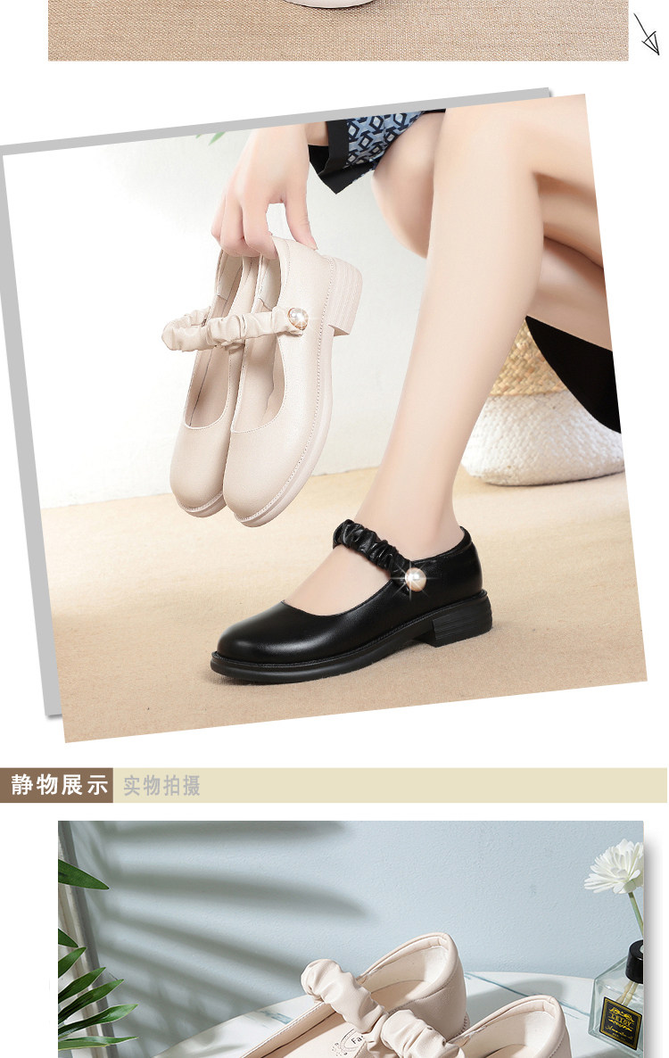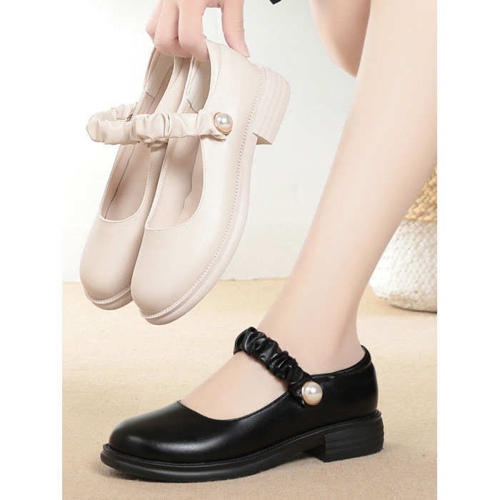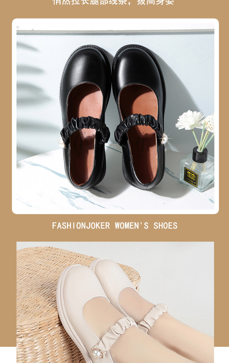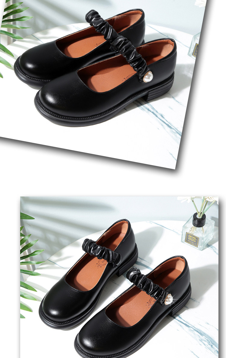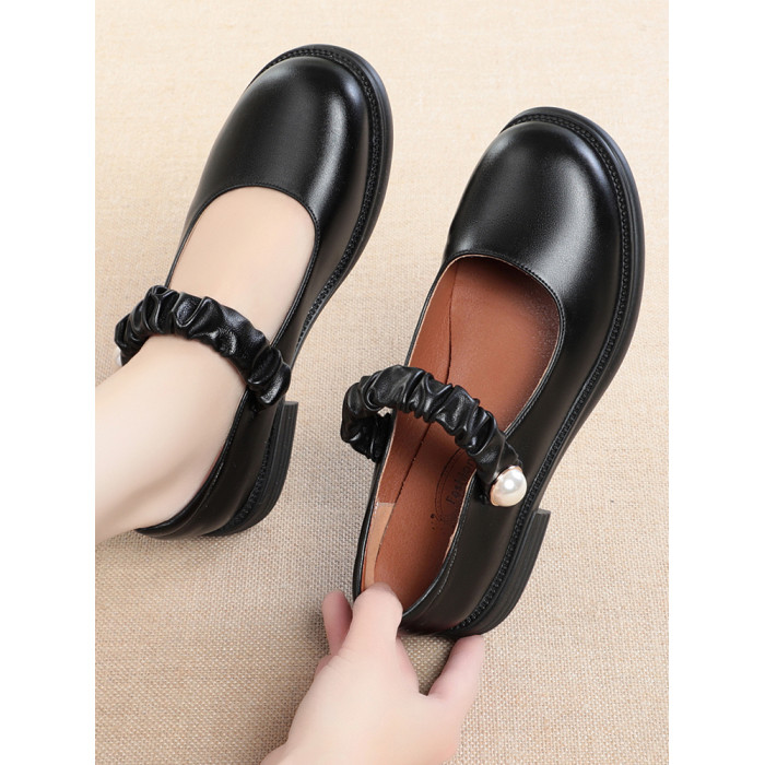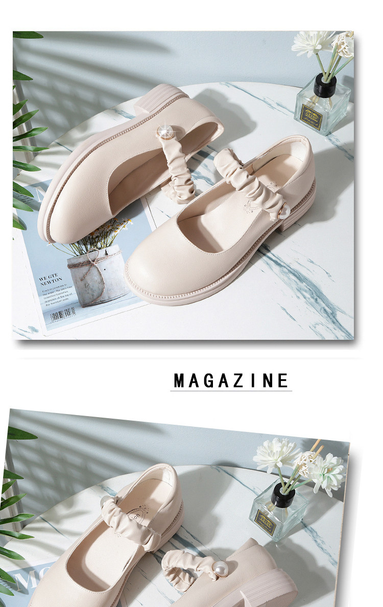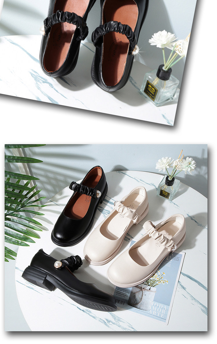 瑪麗珍小皮鞋女珍珠日系jk學院風春秋新款低跟圓頭淺口真皮單鞋女