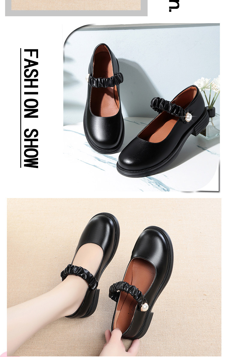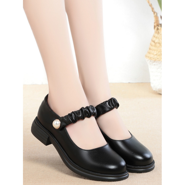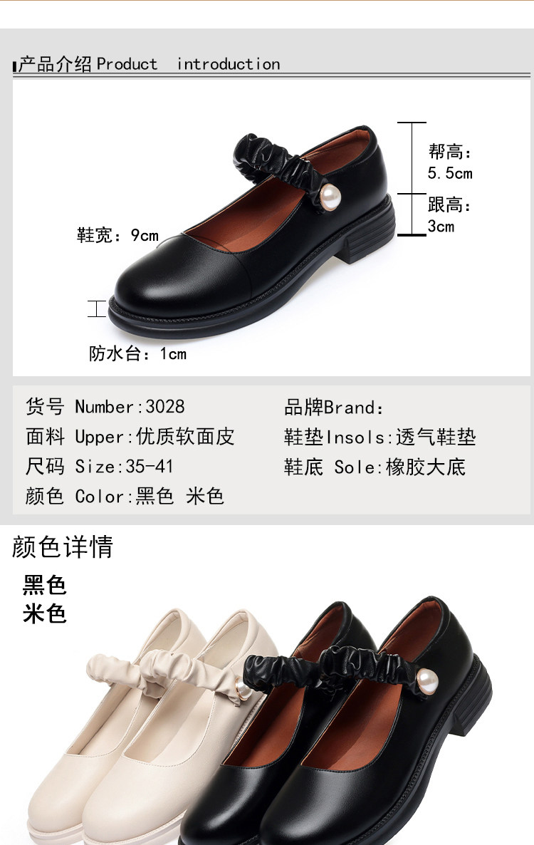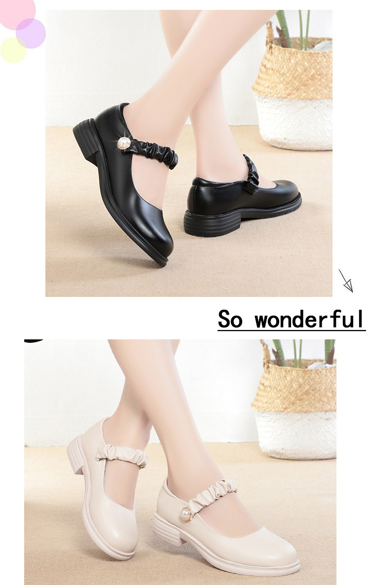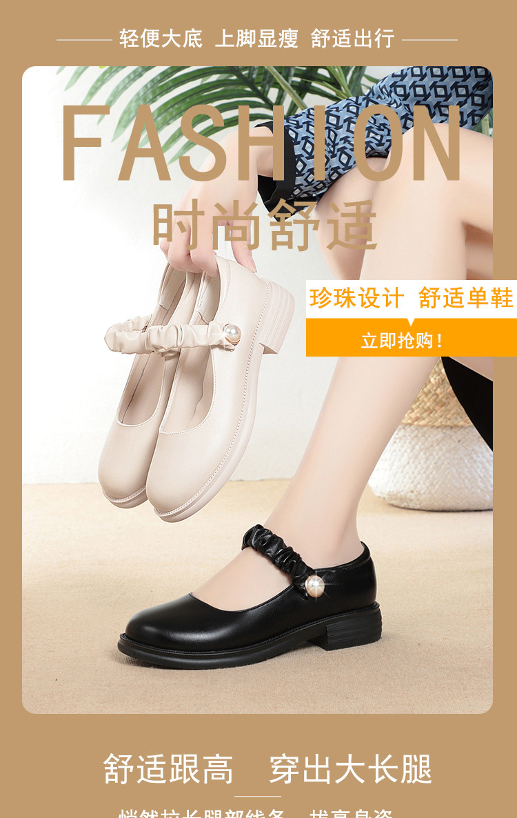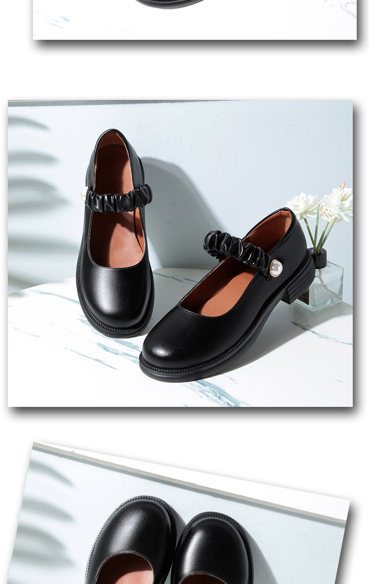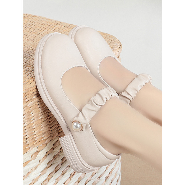 瑪麗珍小皮鞋女珍珠日系jk學院風春秋新款低跟圓頭淺口真皮單鞋女