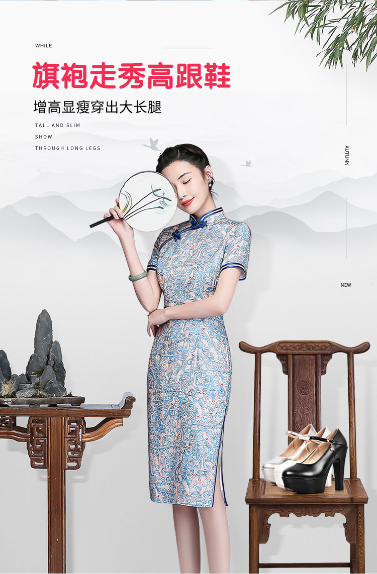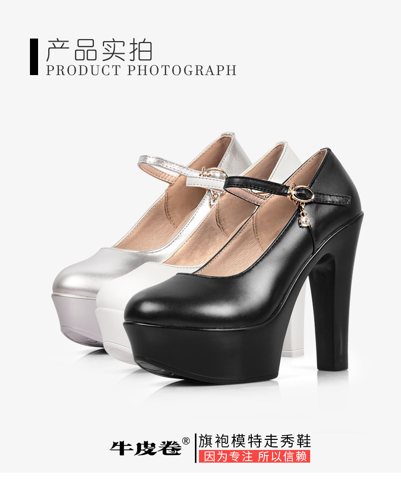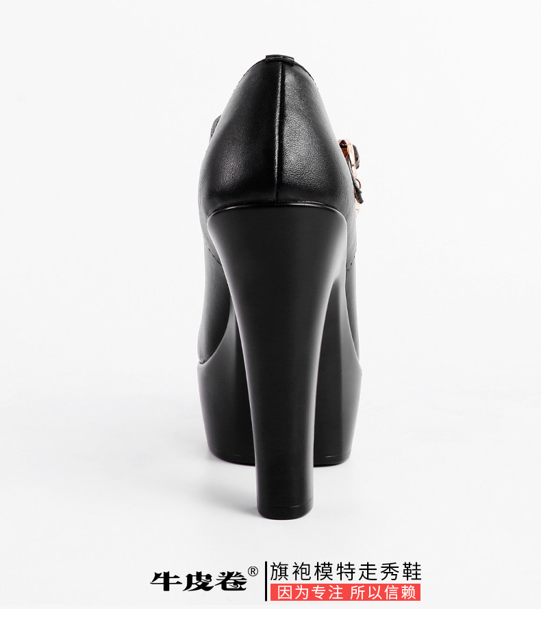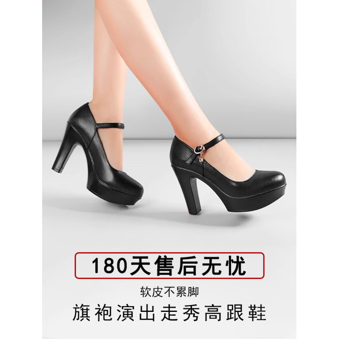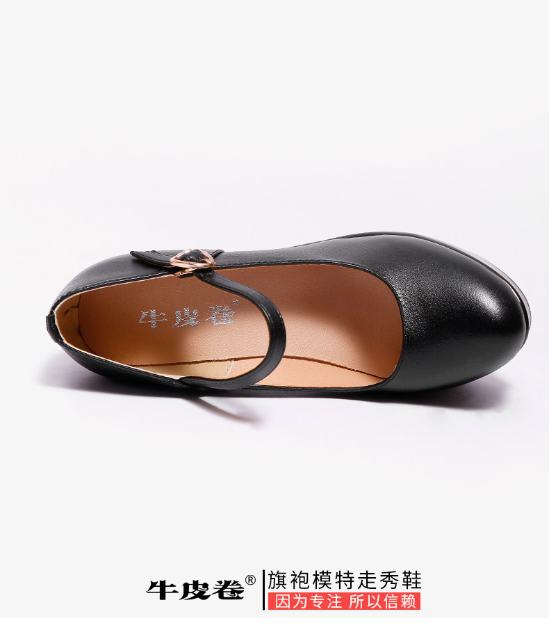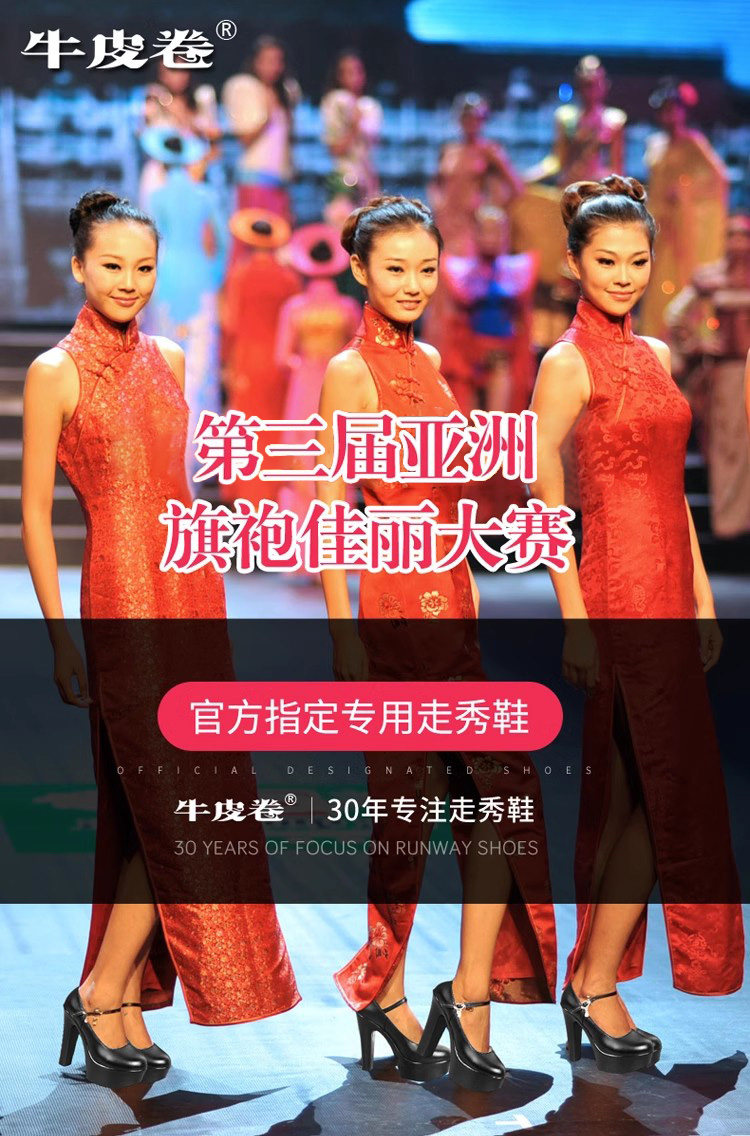 模特走秀高跟鞋女不累腳專用旗袍粗跟真皮跳舞t台中老年演出舞蹈