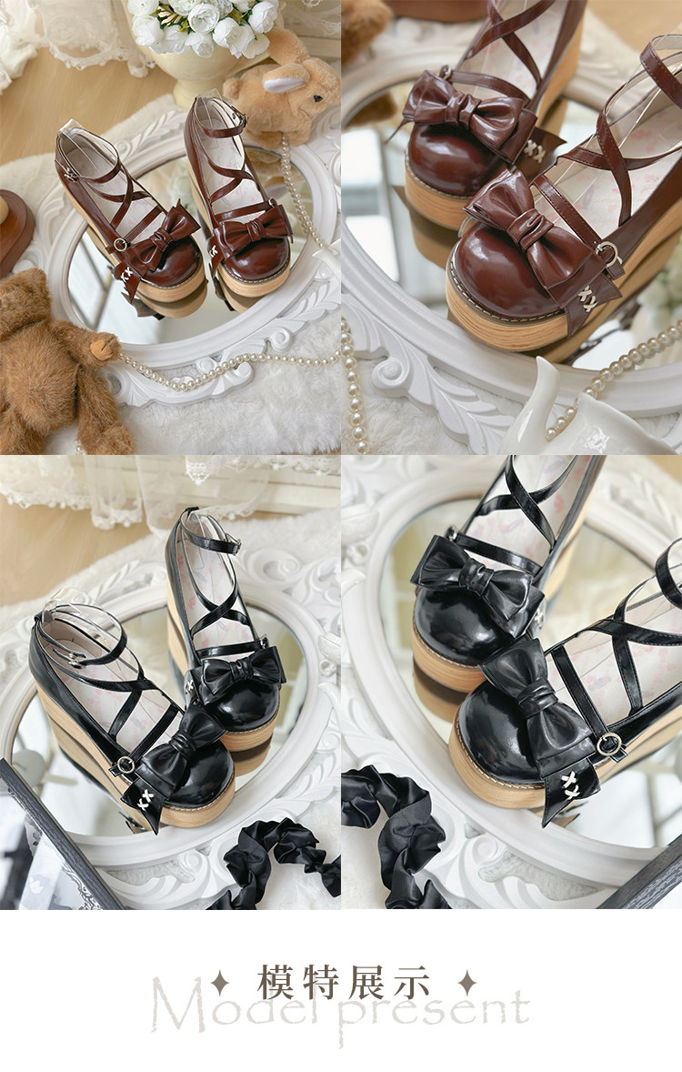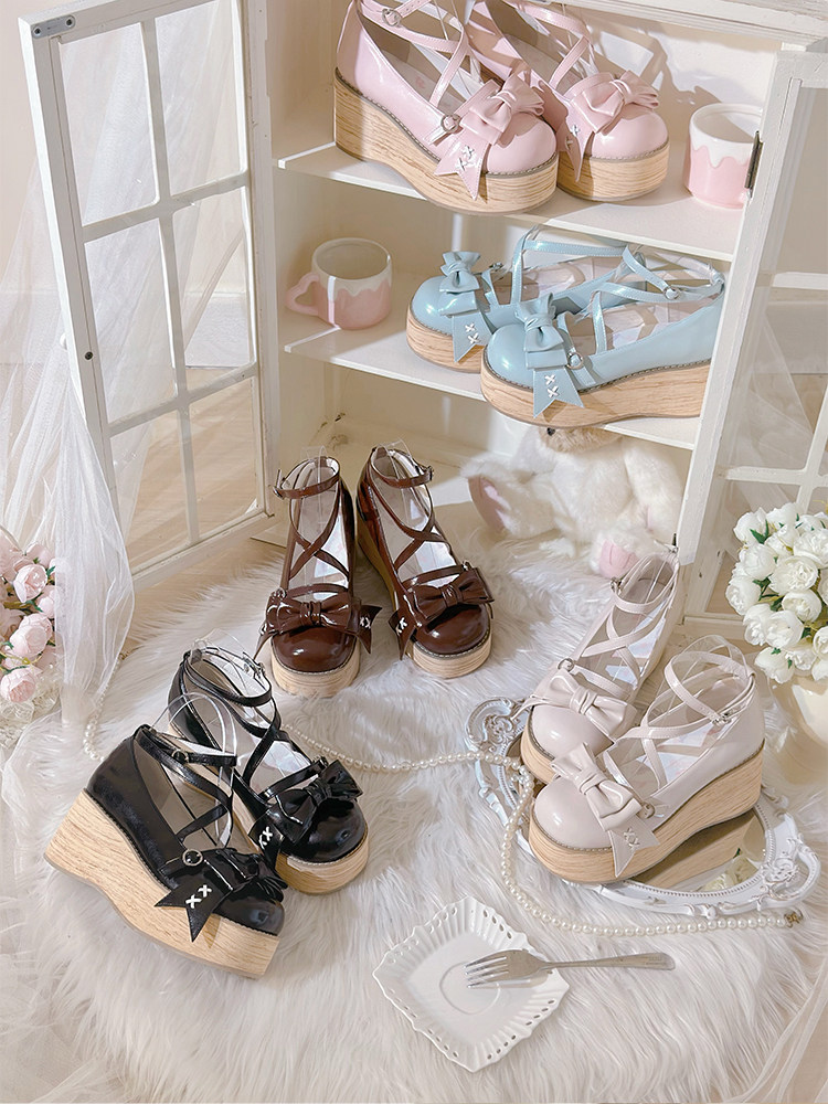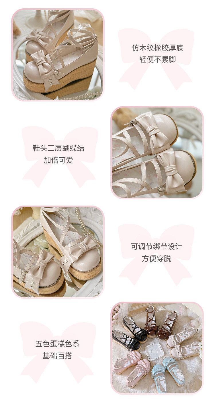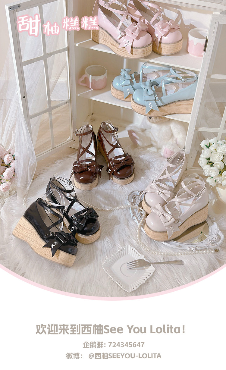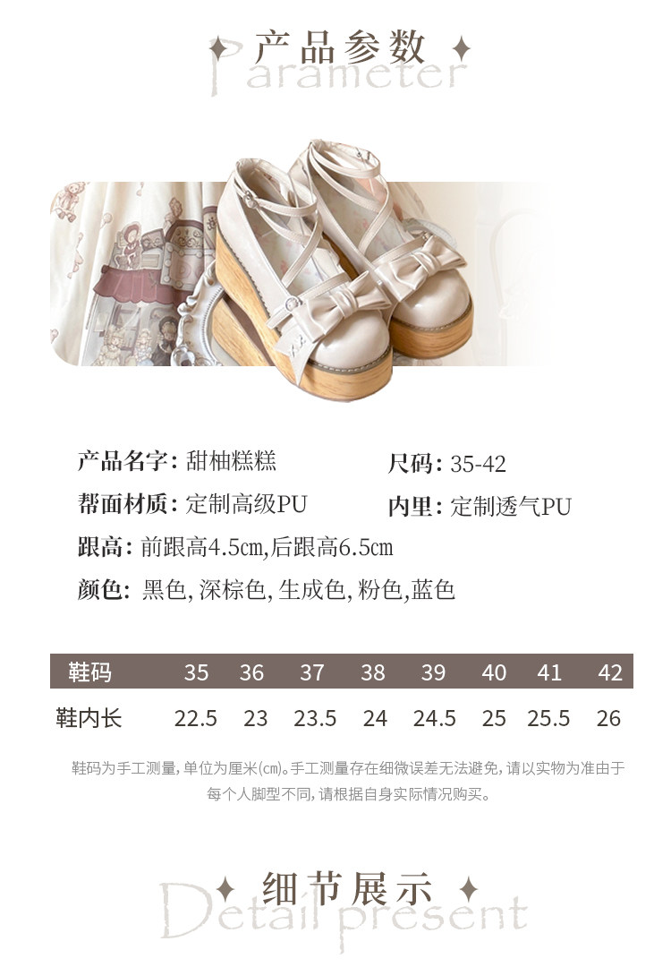 西柚原創新款甜柚糕糕松糕lo鞋增高木紋厚底洛麗塔lolita鞋子女鞋