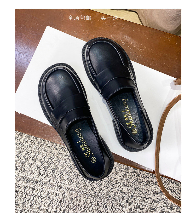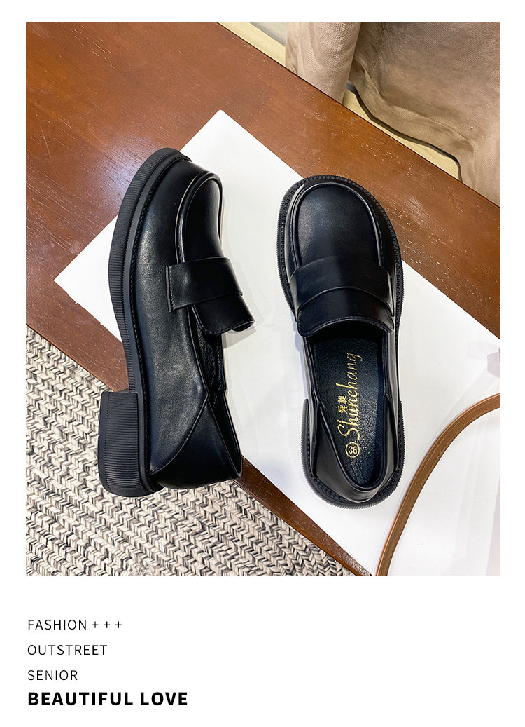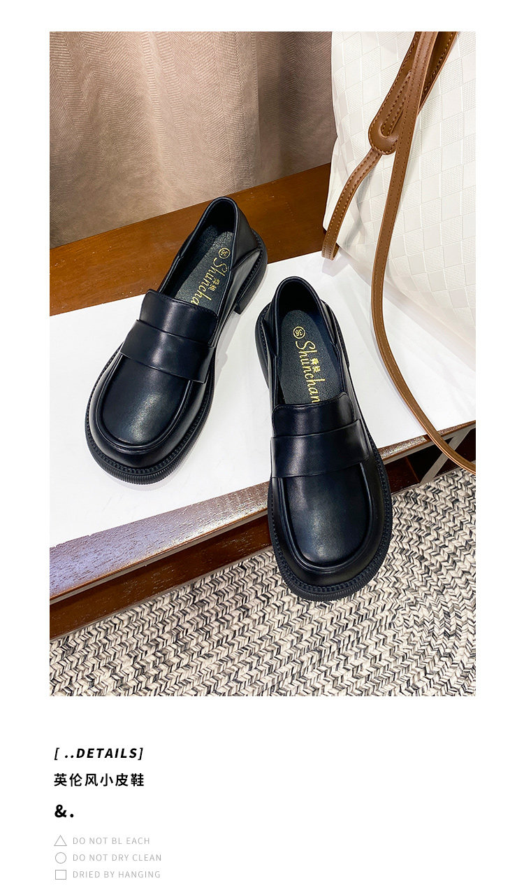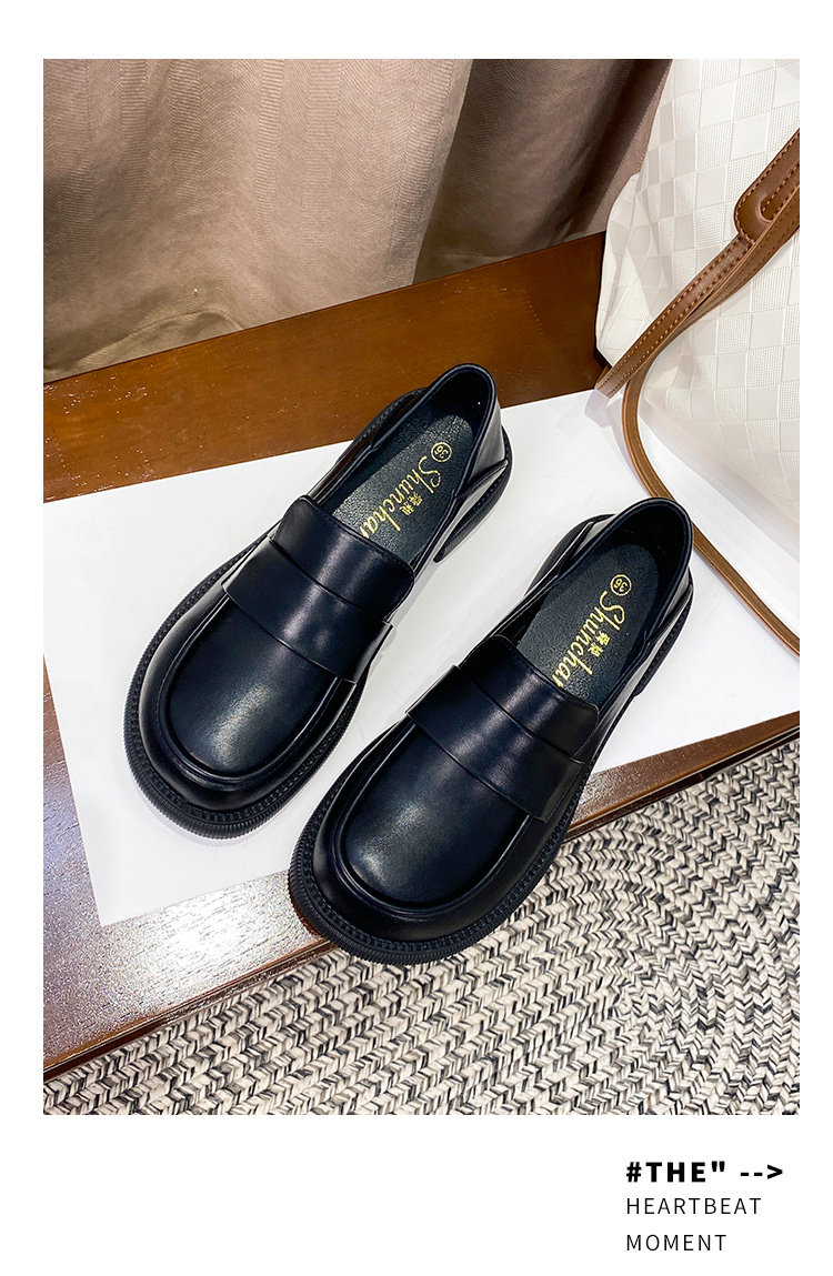 帥氣厚底小皮鞋女粗跟2025新品英倫風軟皮軟底豆豆樂福鞋33到46碼
