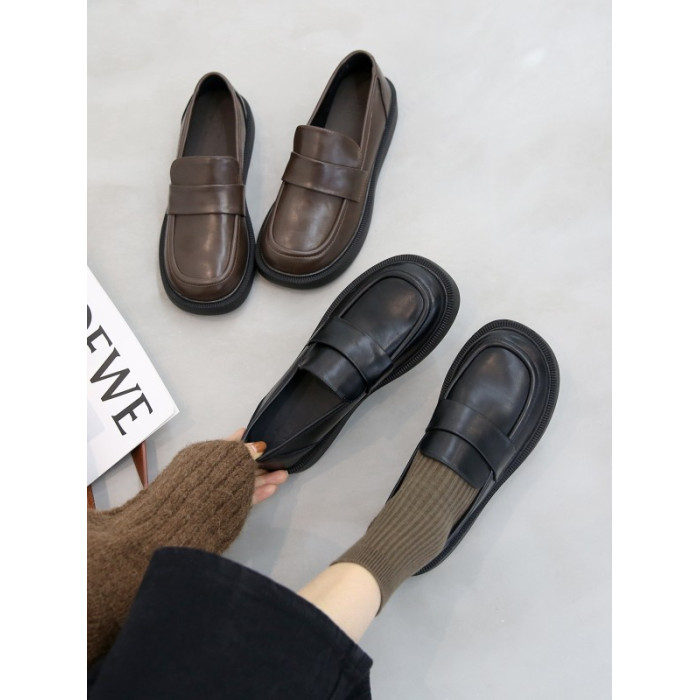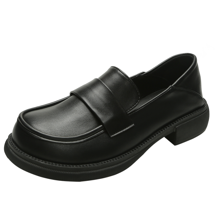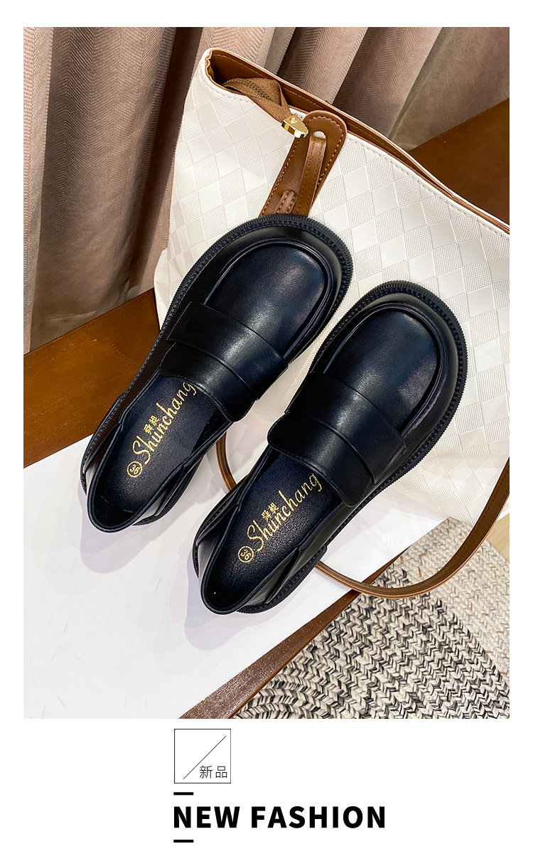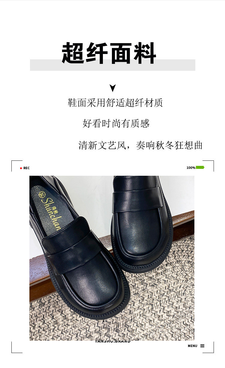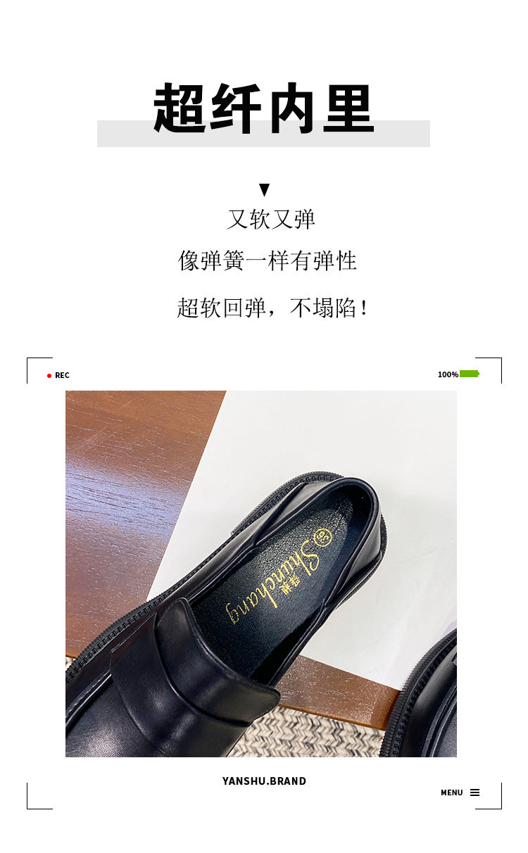 帥氣厚底小皮鞋女粗跟2025新品英倫風軟皮軟底豆豆樂福鞋33到46碼