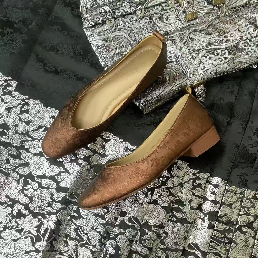 淺口單鞋女2023年春夏季新款復古搭釦低跟鞋文藝方頭軟皮瑪麗珍鞋