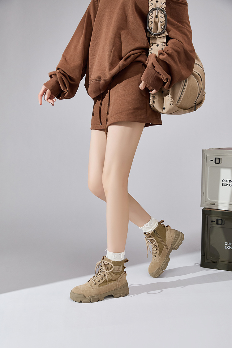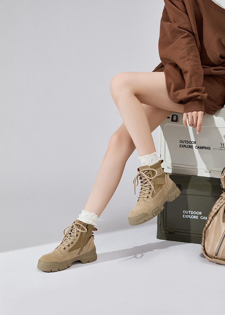 866-6透氣戶外露營工裝靴側拉鍊登山沙漠靴英倫復古增高馬丁靴女