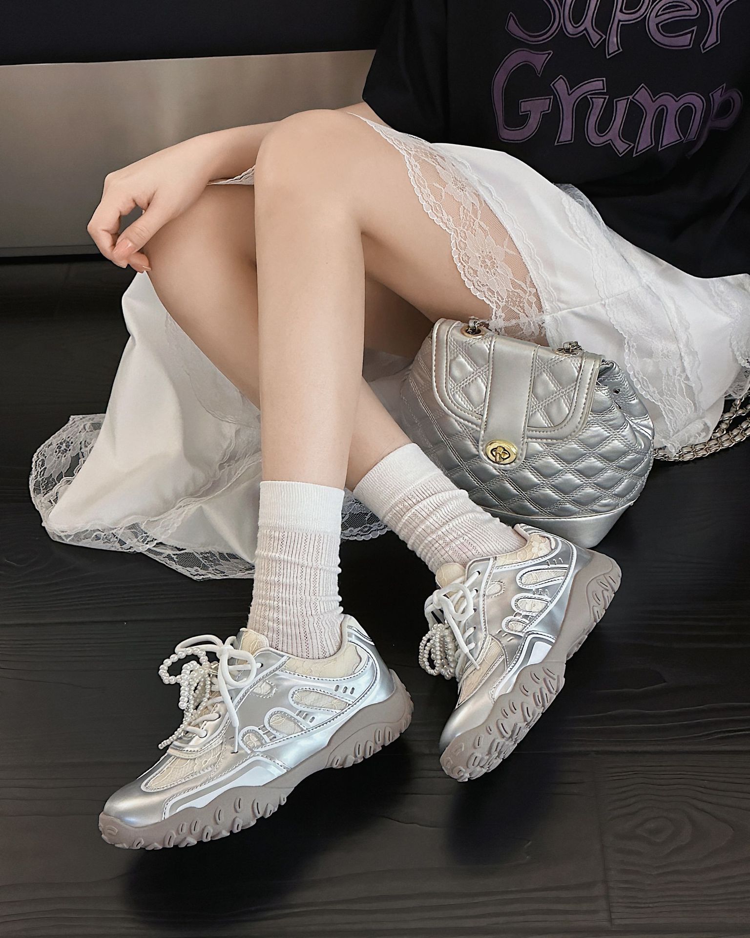 內增高德訓鞋女2025夏新款網面運動鞋透氣老爹鞋7cm女鞋厚底單鞋