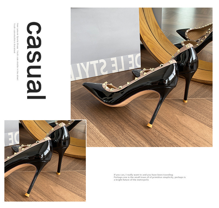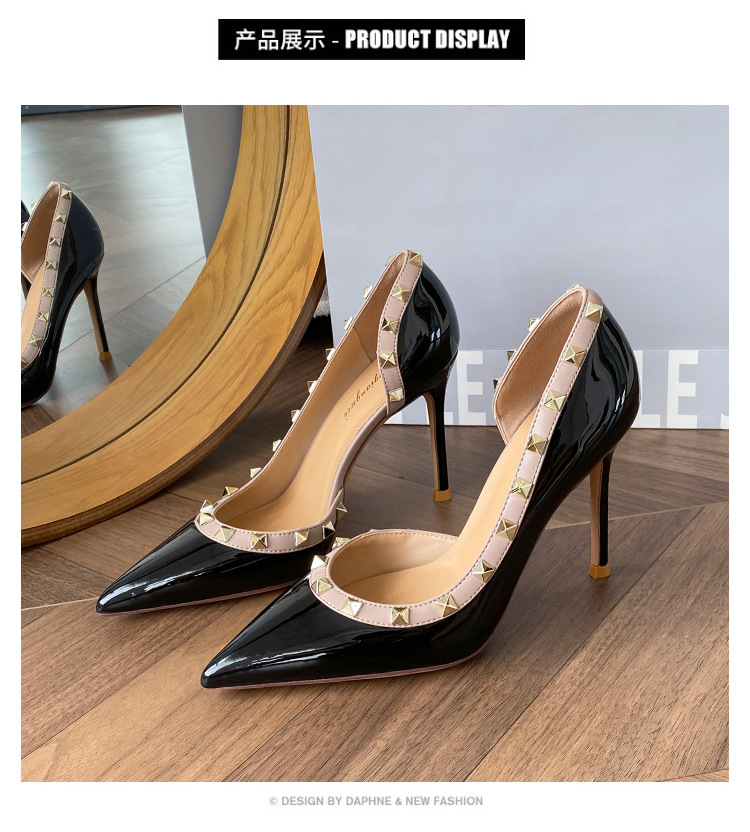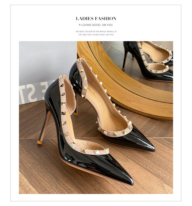 鉚釘高跟鞋女細跟春秋2026新款尖頭氣質絕美柳丁性感禦姐漆皮單鞋