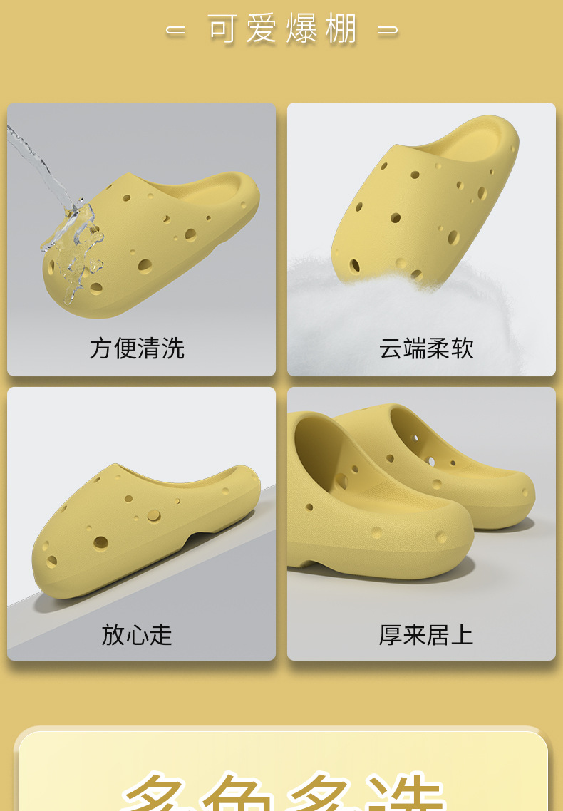 奶酪拖鞋女夏季包頭厚底居家居浴室涼拖情侶洞洞鞋防滑增高情侶款