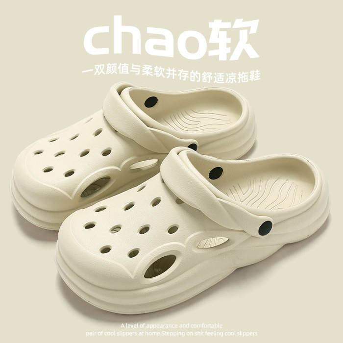 洞洞鞋女夏季踩屎感涼鞋厚底防滑沙灘包頭外穿涼拖鞋女