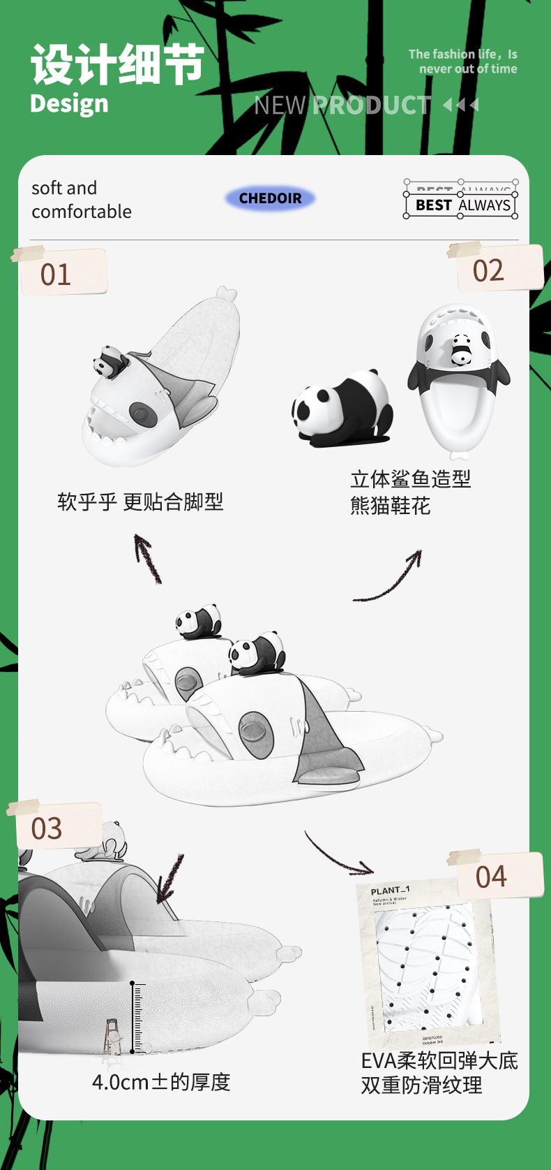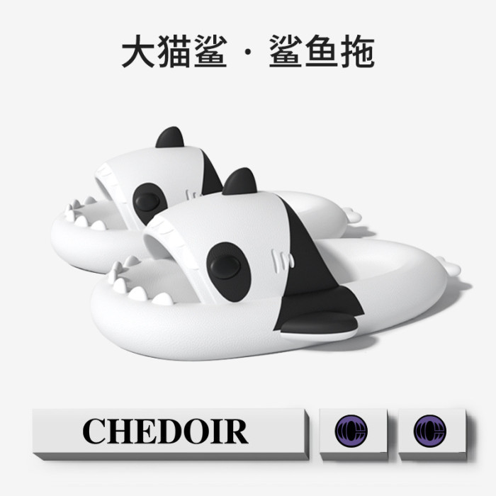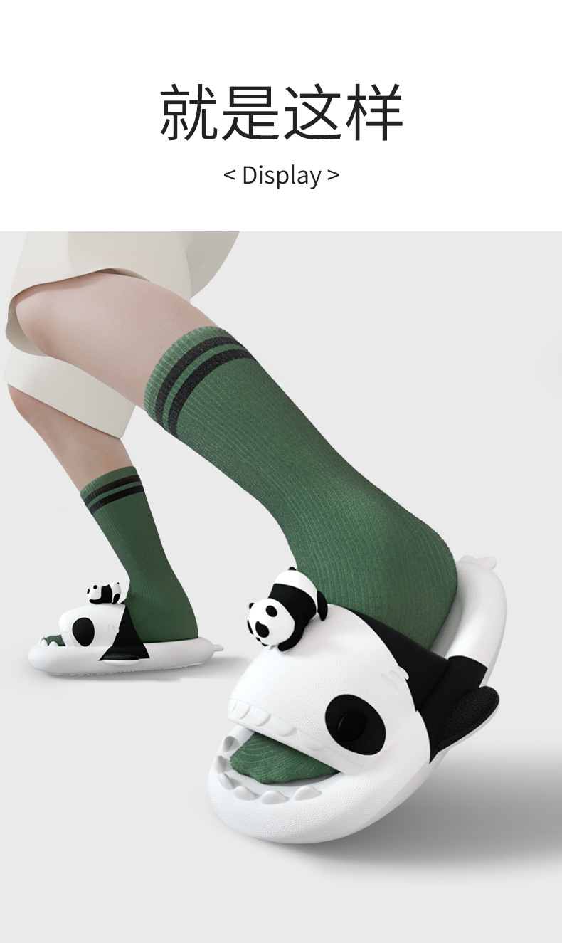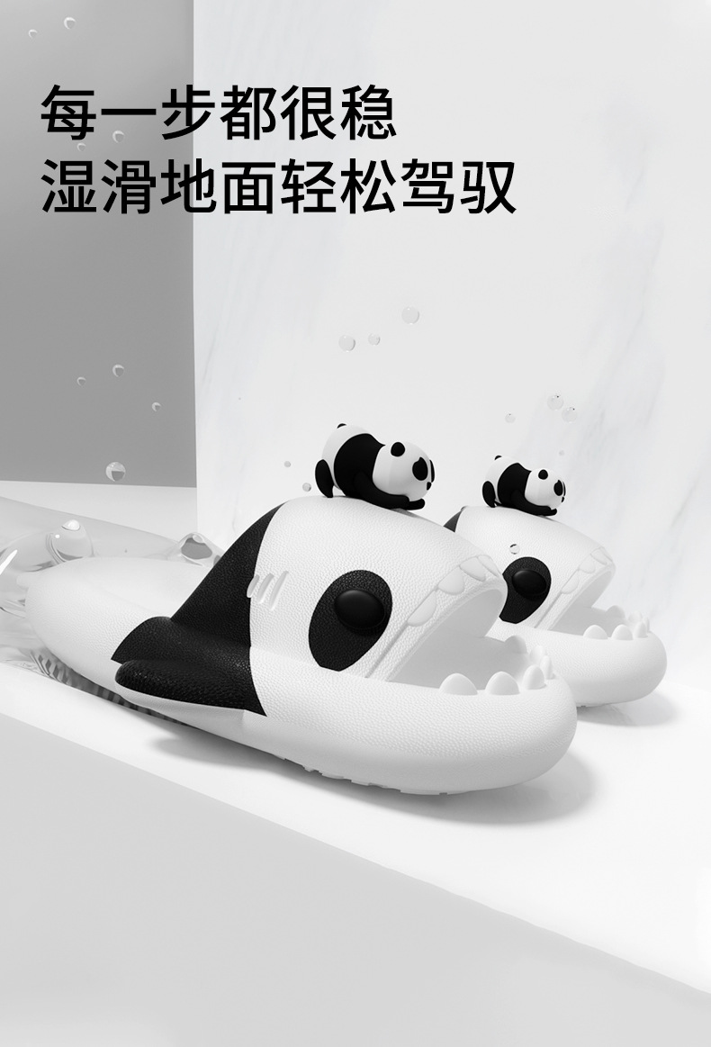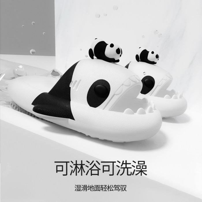 爆款小熊貓鯊魚拖鞋夏季踩屎感室內卡通外穿ins厚底防滑涼拖