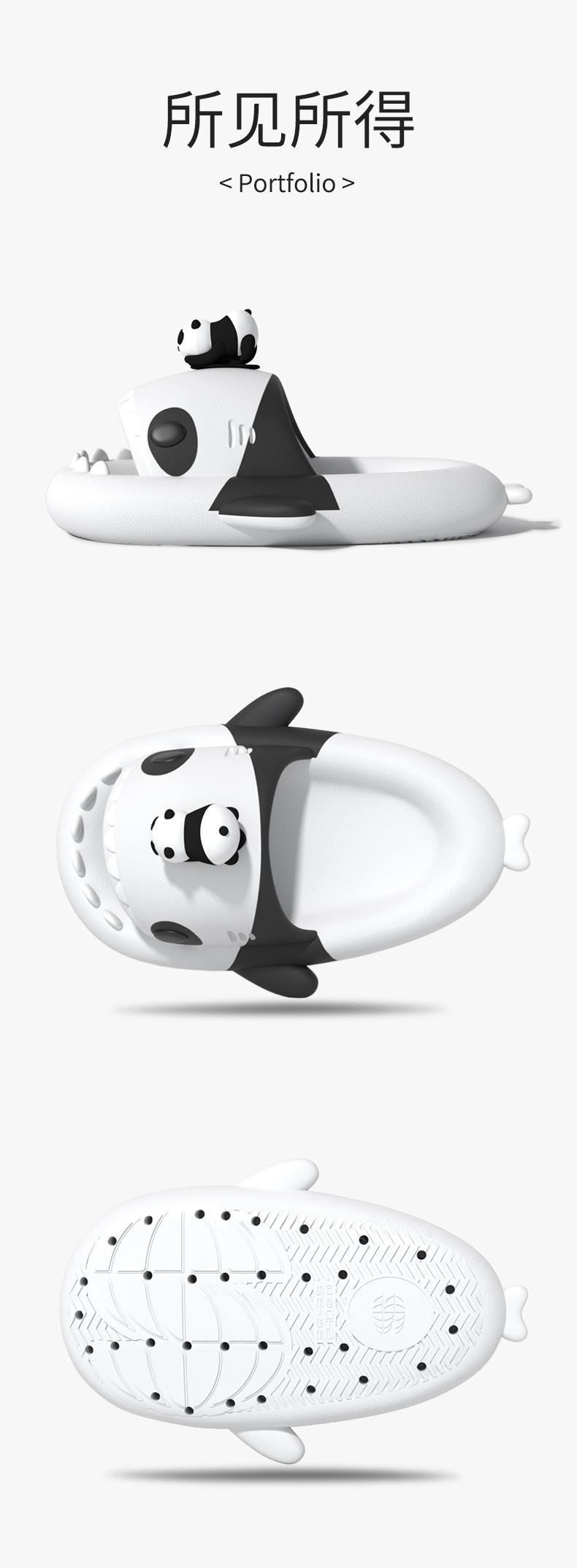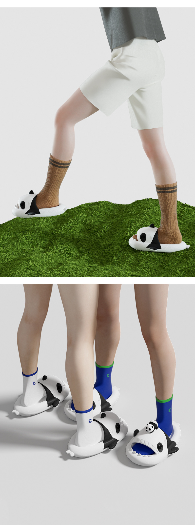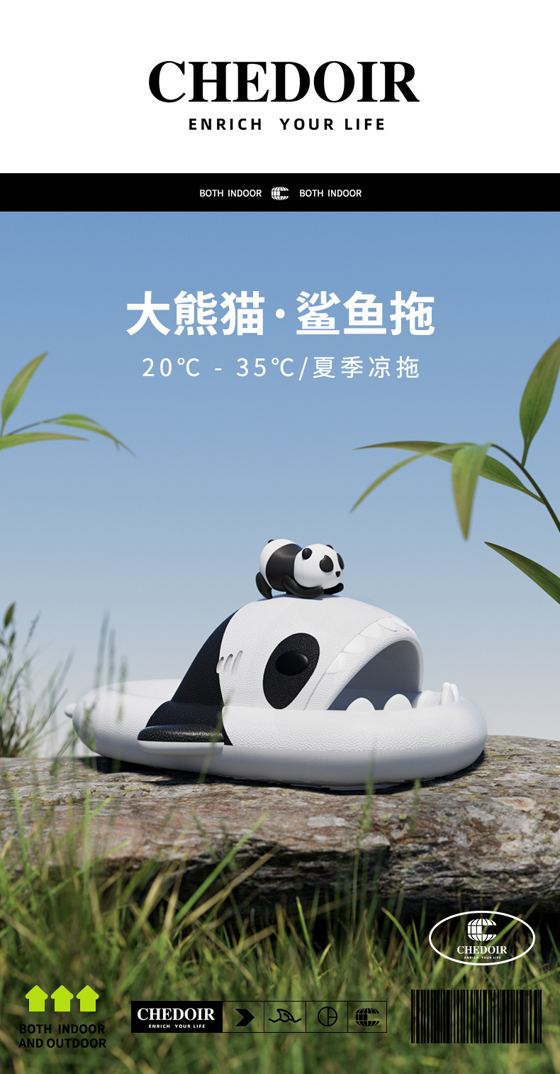 爆款小熊貓鯊魚拖鞋夏季踩屎感室內卡通外穿ins厚底防滑涼拖