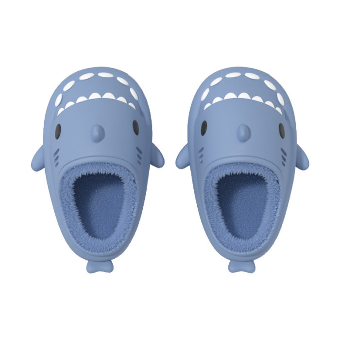 CHEDOIRD冬季鯊魚棉拖厚底防滑兒童毛毛絨保暖室內居家親子棉拖鞋