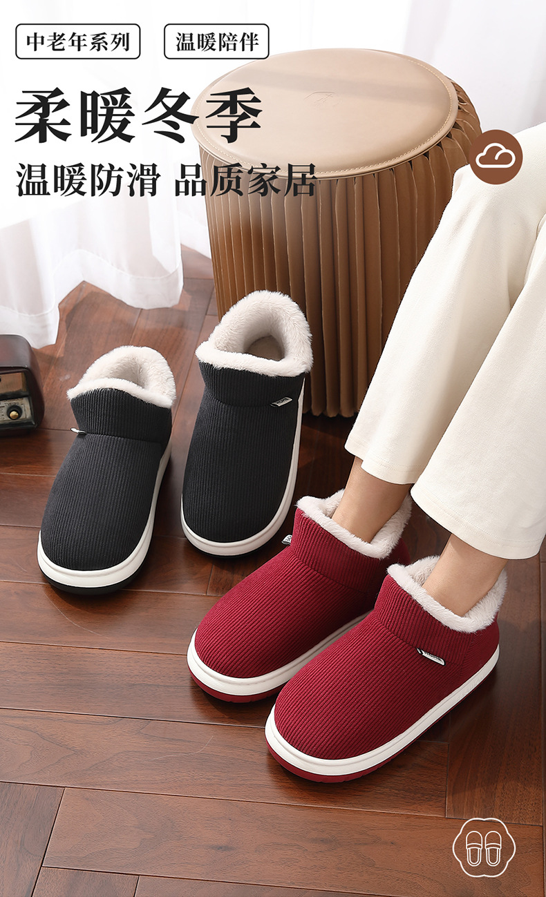 踩屎感老人棉拖鞋女士冬季防滑包跟室內家居厚底毛絨棉鞋男士