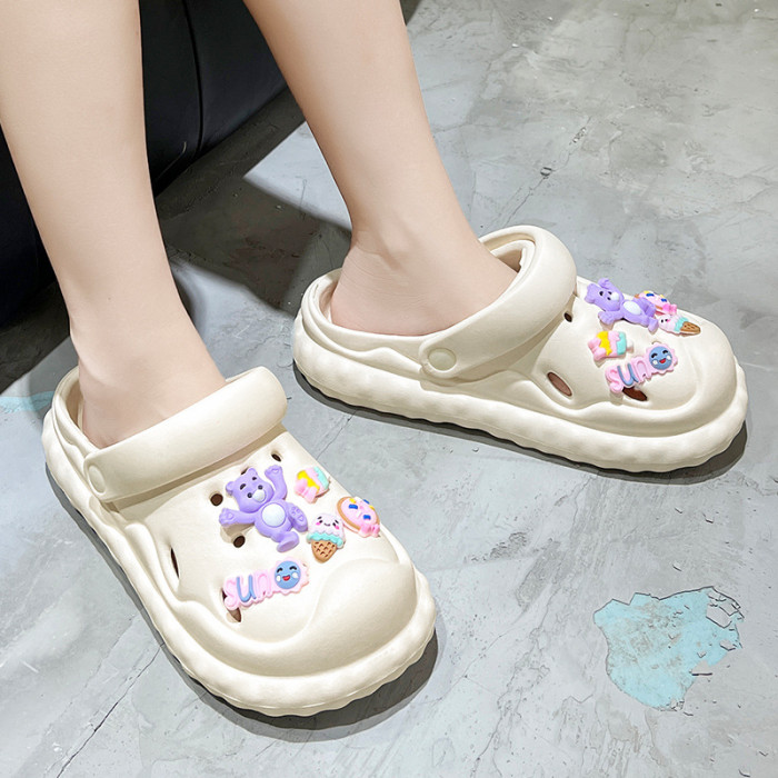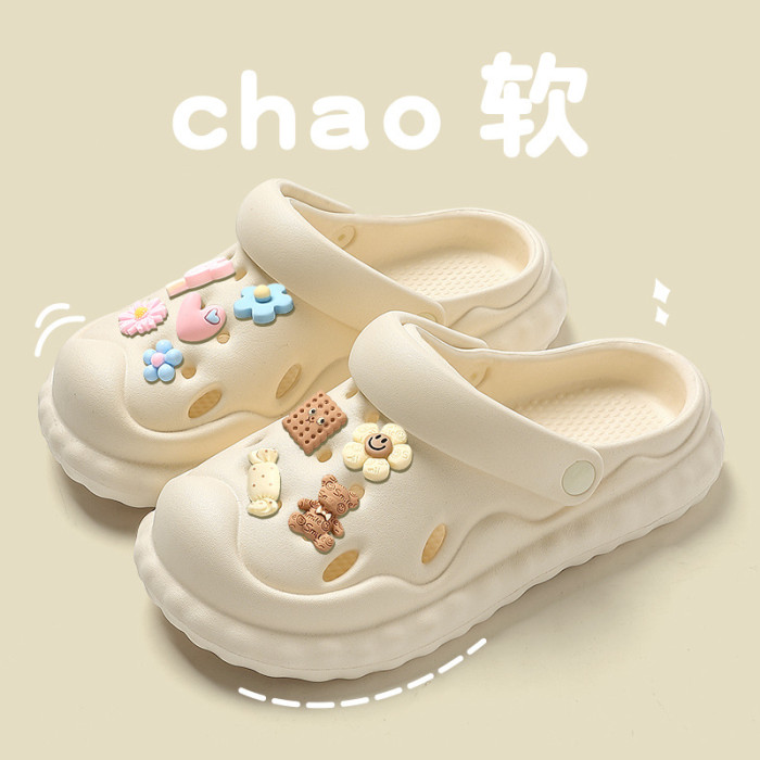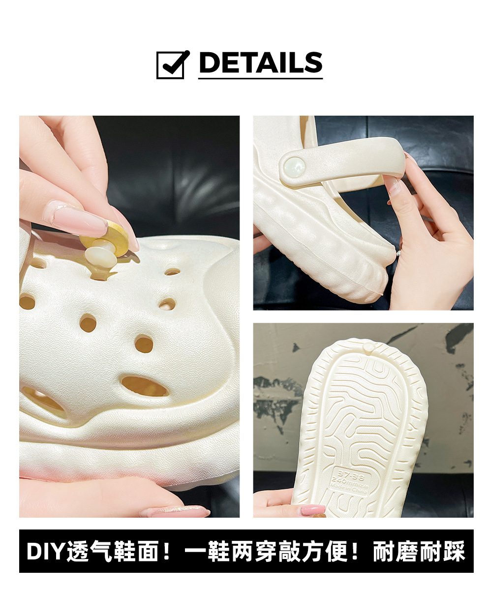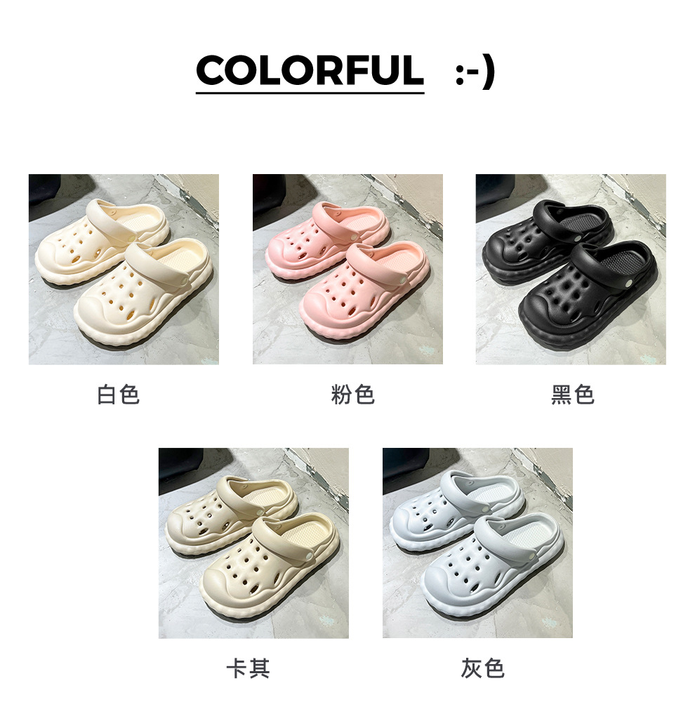 新款洞洞鞋女2025夏季外穿厚底網紅沙灘踩屎感包頭半涼拖鞋女夏天