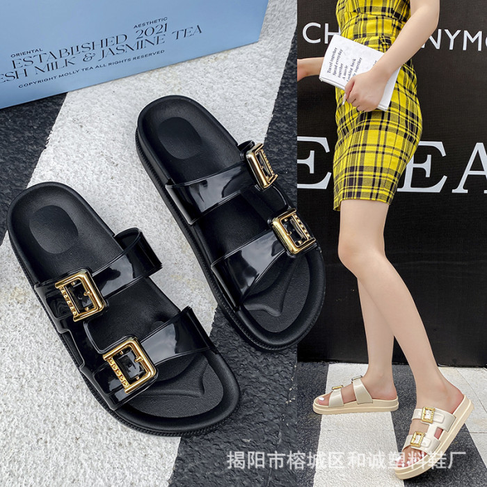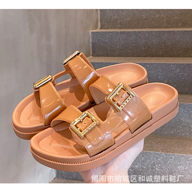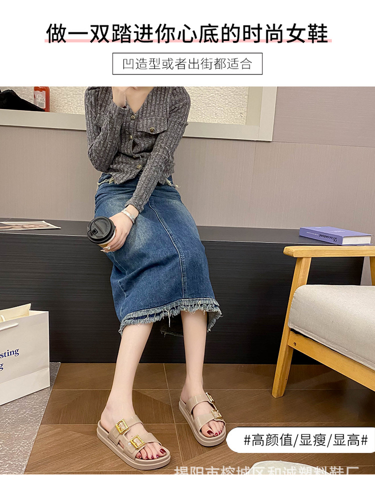 松糕涼拖鞋女款夏季2024新款高級感時尚沙灘外穿厚底高跟防滑拖鞋
