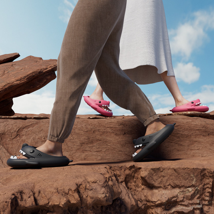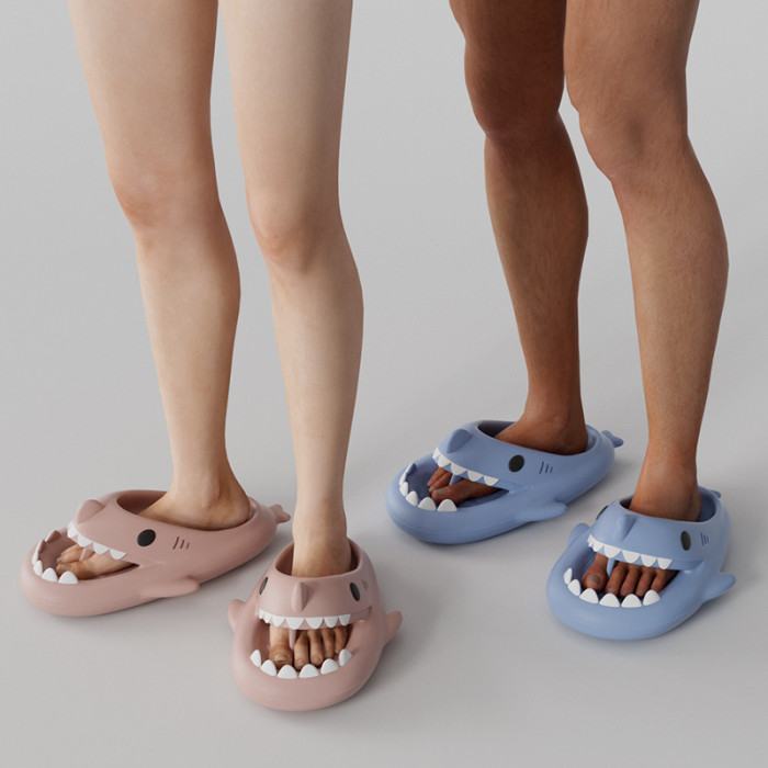 鯊魚人字拖男士夏外穿2024新款EVA厚底夾角涼拖海邊沙灘防滑拖鞋