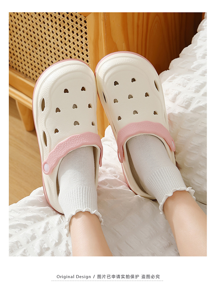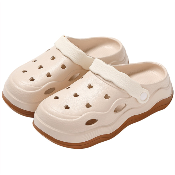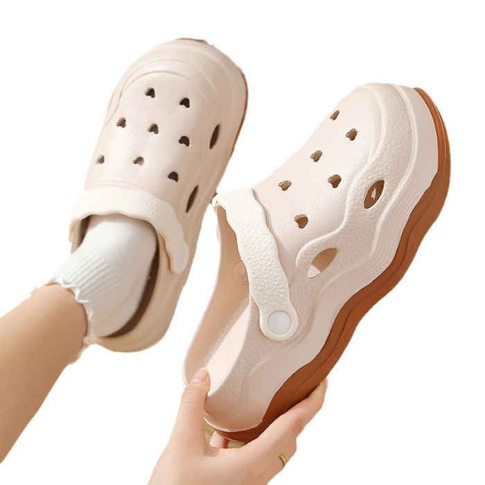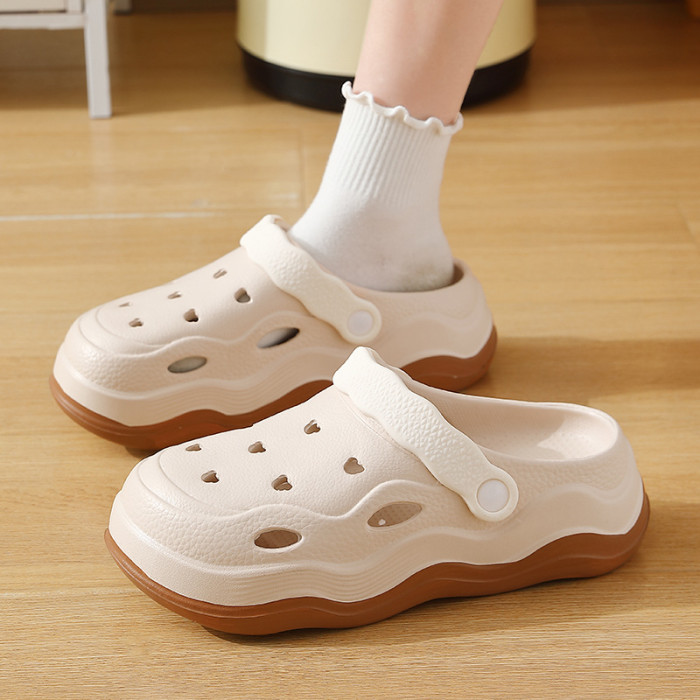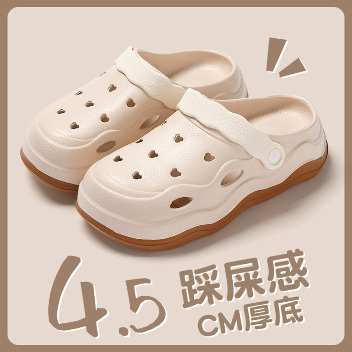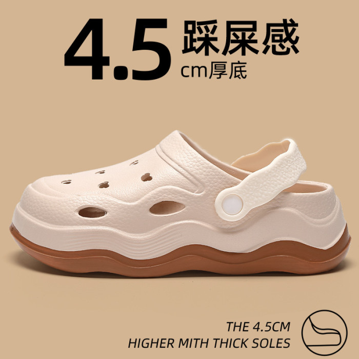 踩屎感洞洞鞋女士夏季外穿2024新款簡約厚底時尚海邊沙灘包頭拖鞋