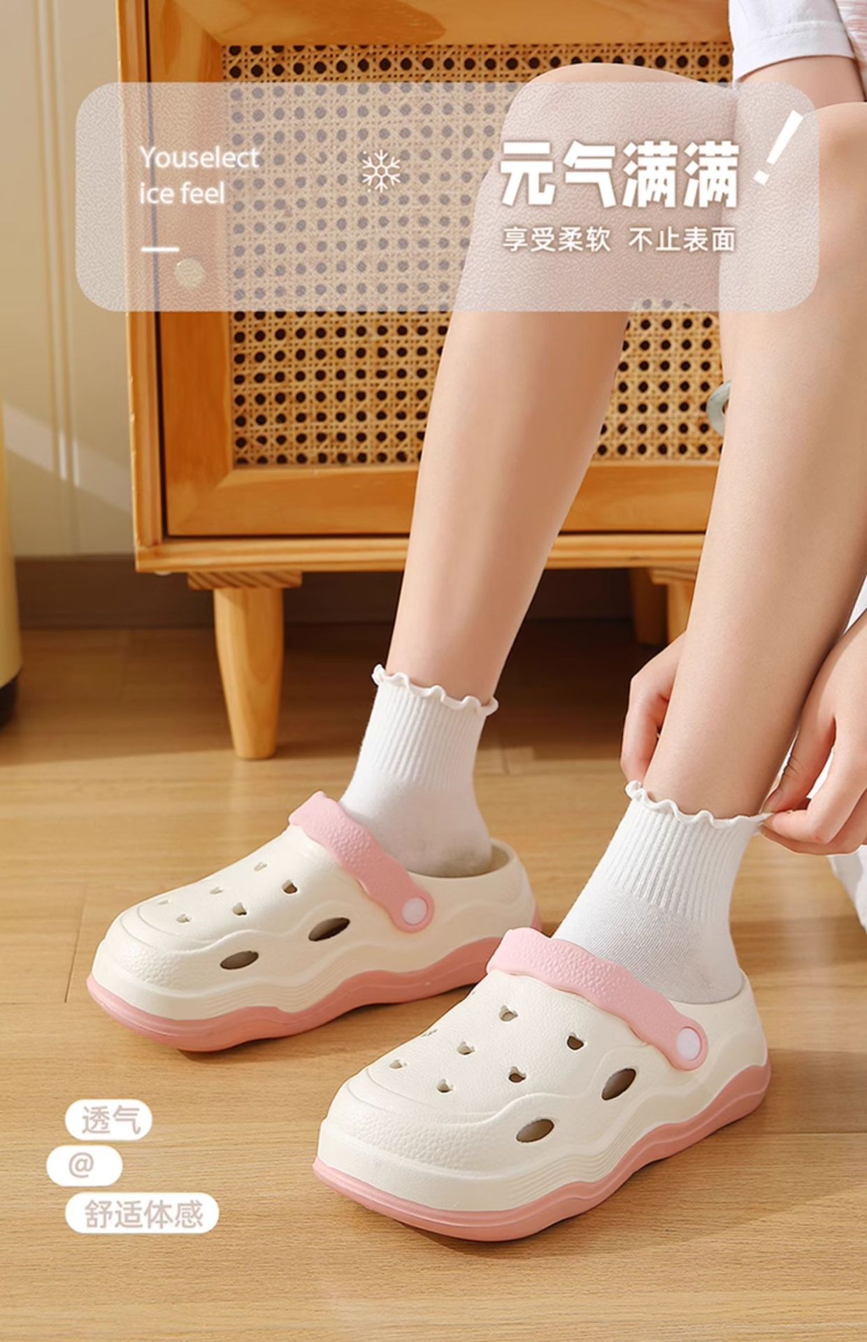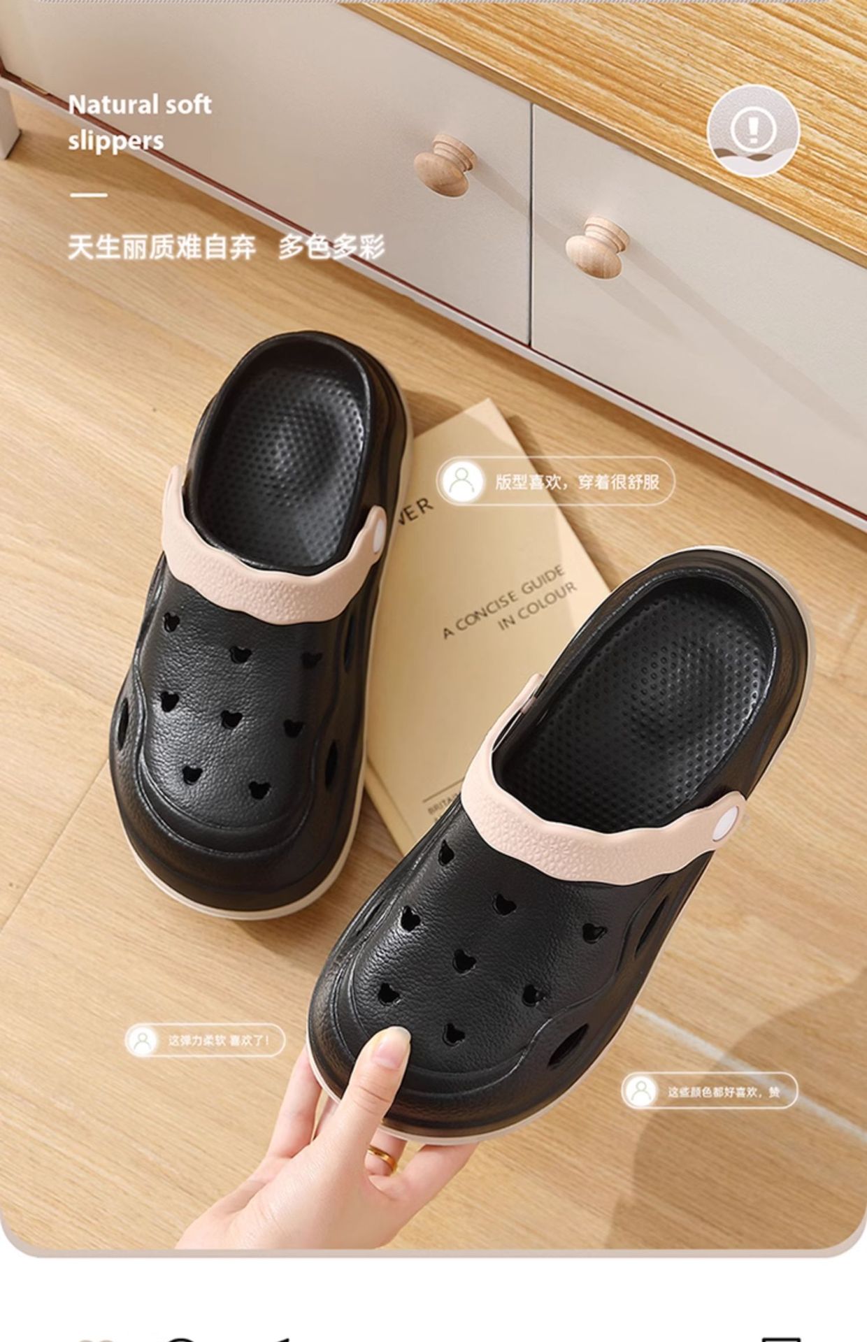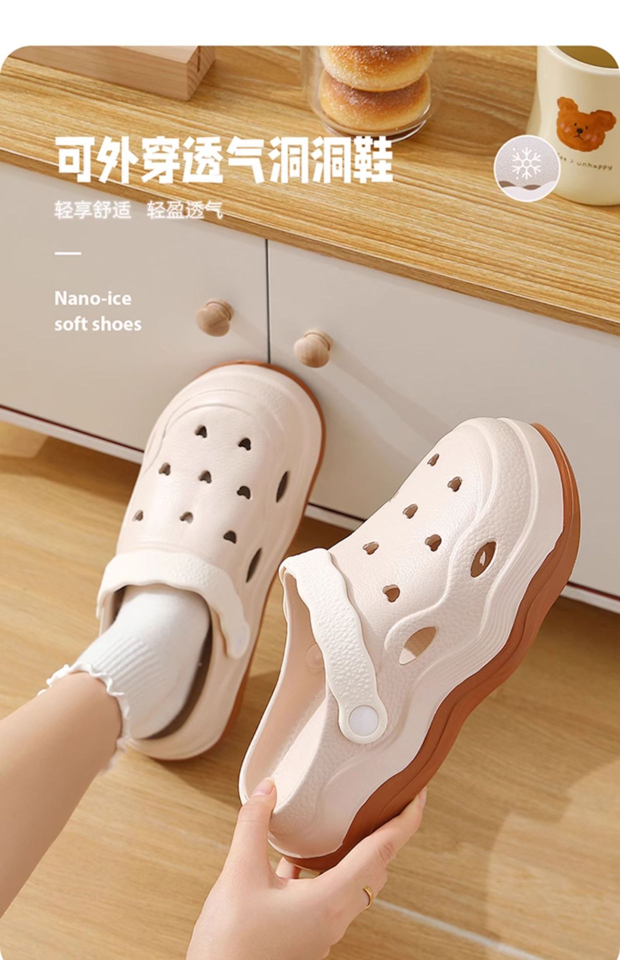 踩屎感洞洞鞋女士夏季外穿2024新款簡約厚底時尚海邊沙灘包頭拖鞋