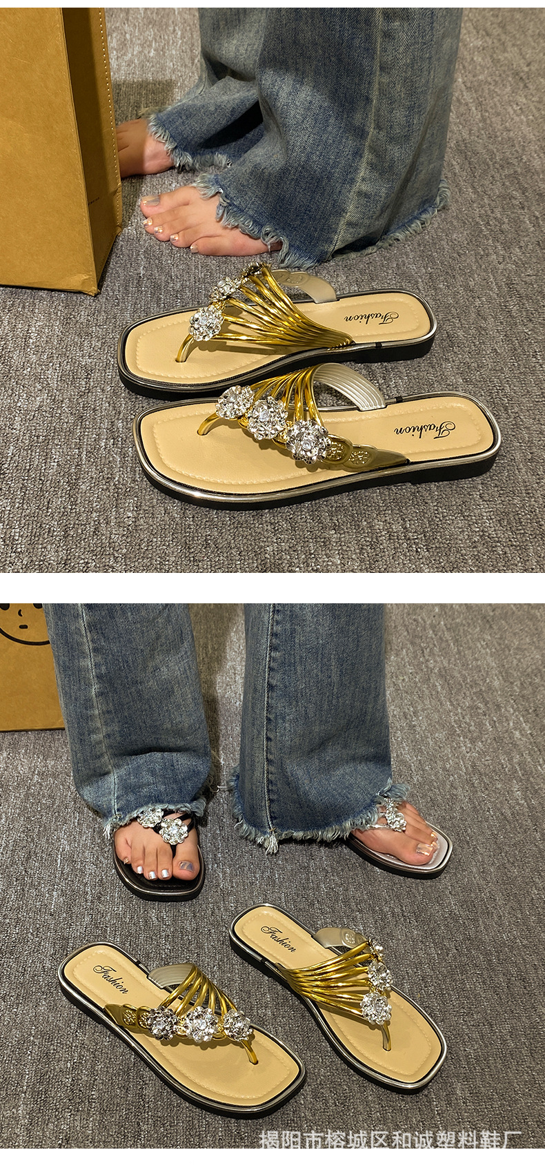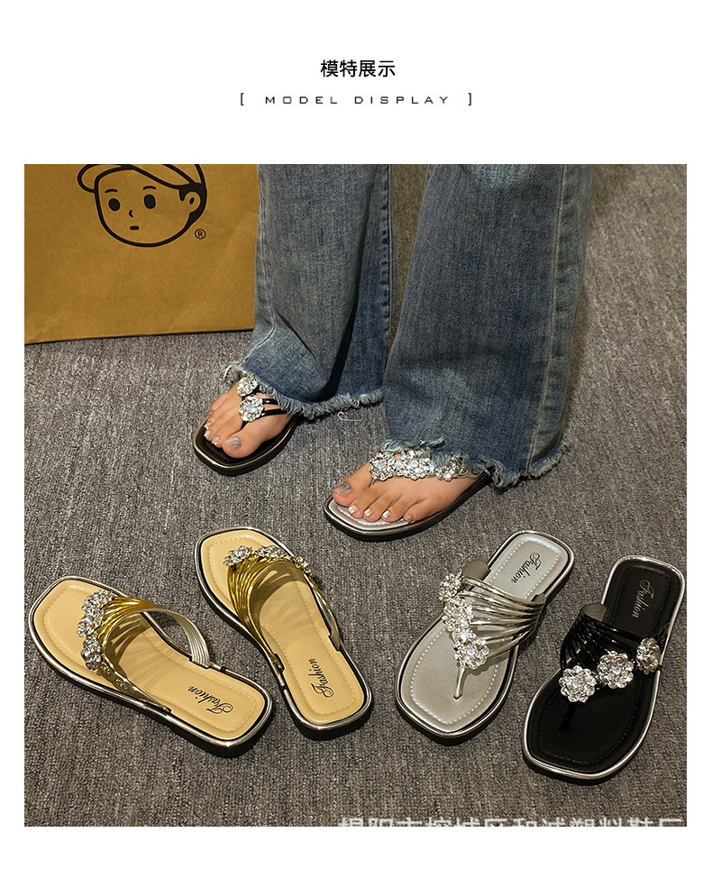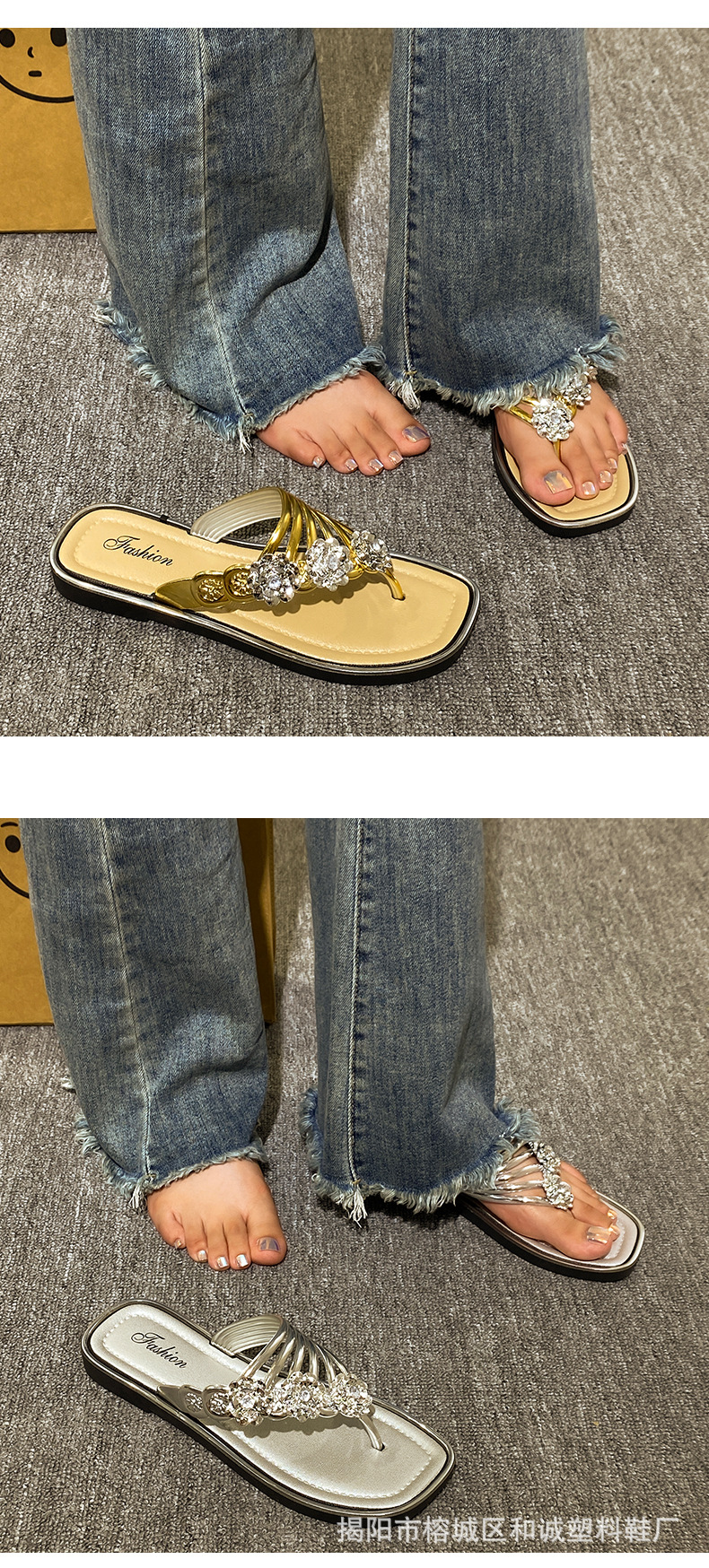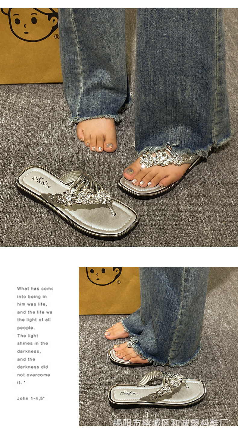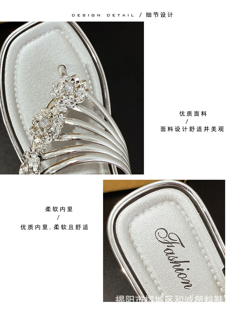 時尚潮厚底銀色人字拖女鞋2024夏季外穿夾趾拖鞋海邊涼拖女款鞋子