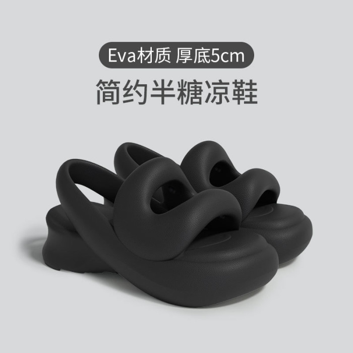 半糖涼鞋女夏季外穿厚底透氣涼鞋增高修腿時尚百搭軟底通勤沙灘鞋