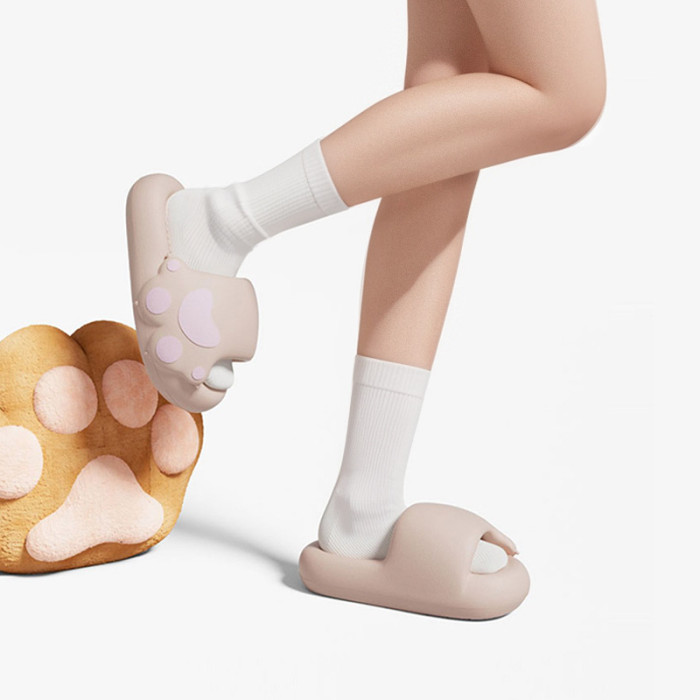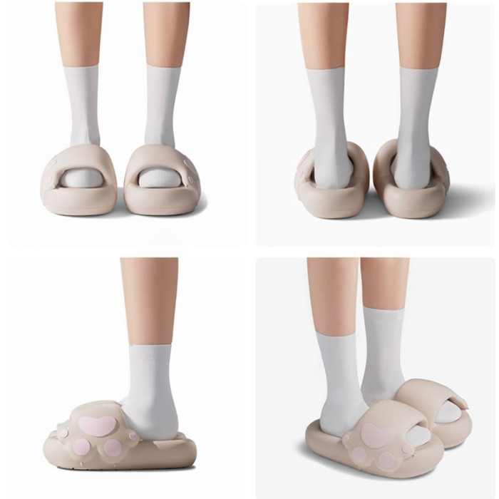 貓爪兒童拖鞋女夏室內居家厚底浴室拖鞋防滑卡通可愛涼拖鞋親子款
