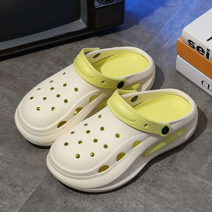 EVA新款洞洞鞋女款夏天顯高包頭涼拖外穿沙灘度假時尚厚底洞洞鞋