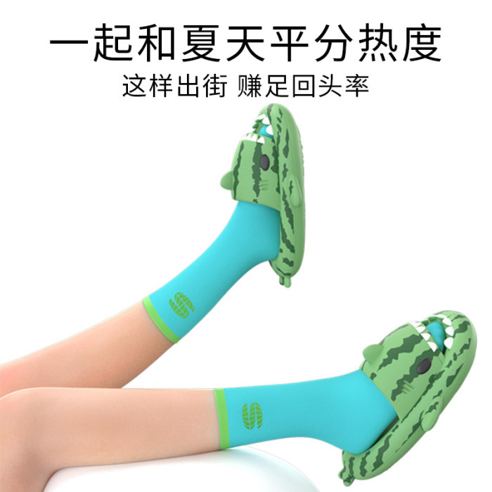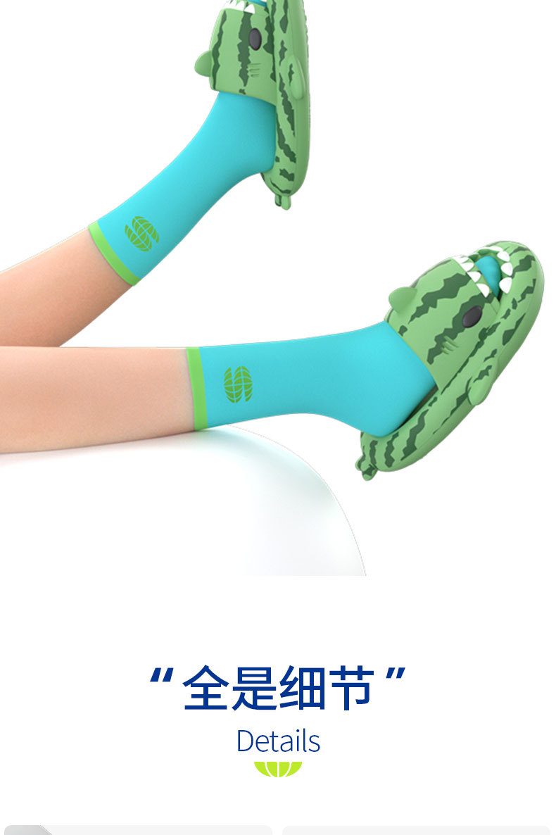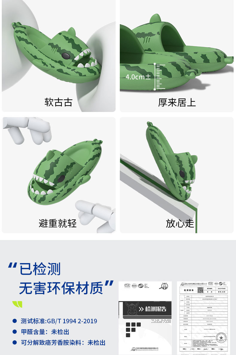 小鯊瓜拖鞋男士夏季室內厚軟底卡通拖鞋防滑透氣鯊魚涼拖鞋女外穿