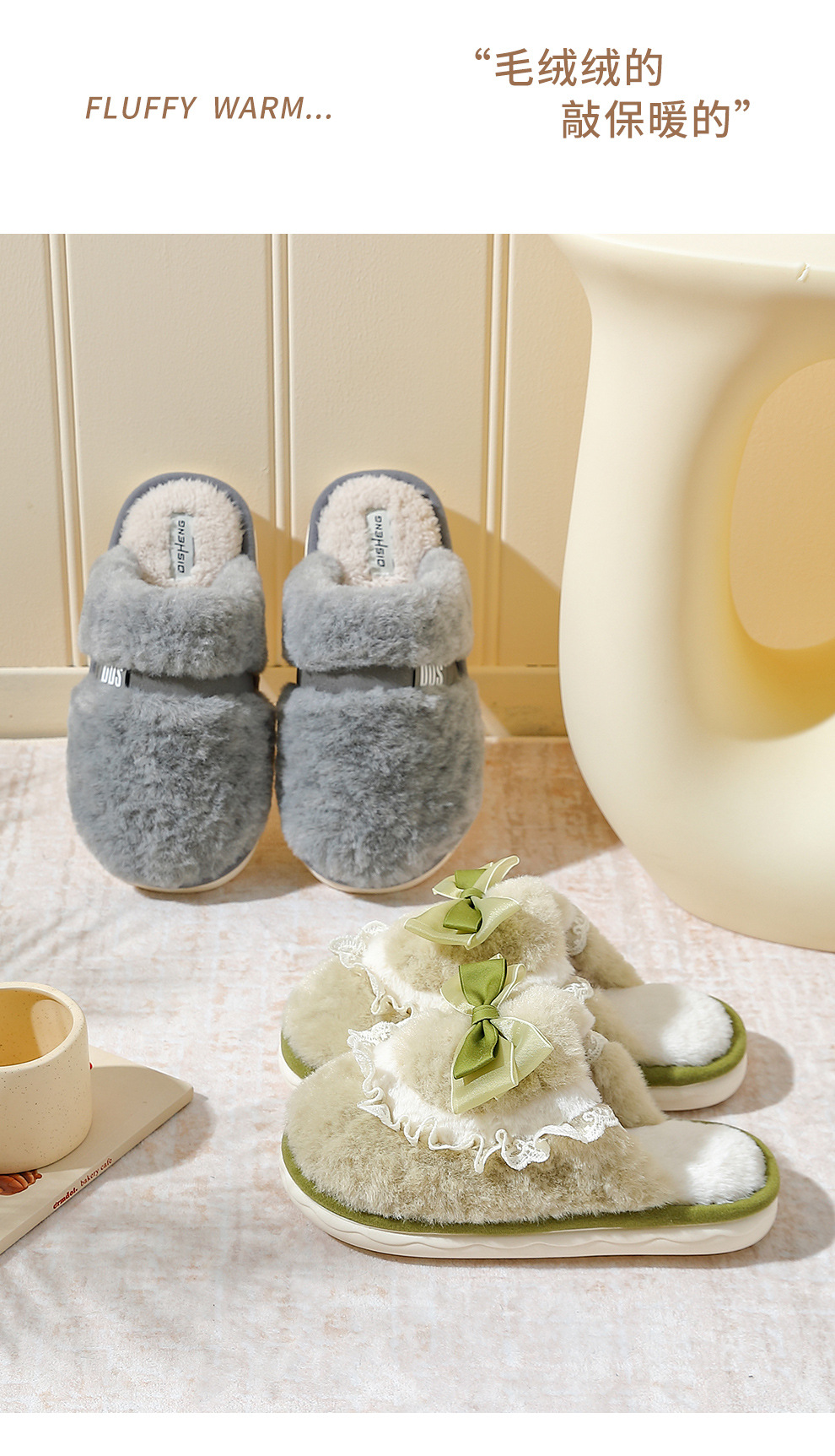 蝴蝶結棉拖鞋女款室內居家冬季保暖月子鞋厚底防滑踩屎感毛絨拖鞋