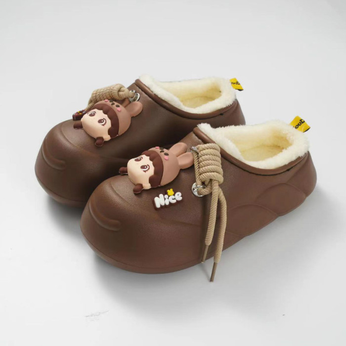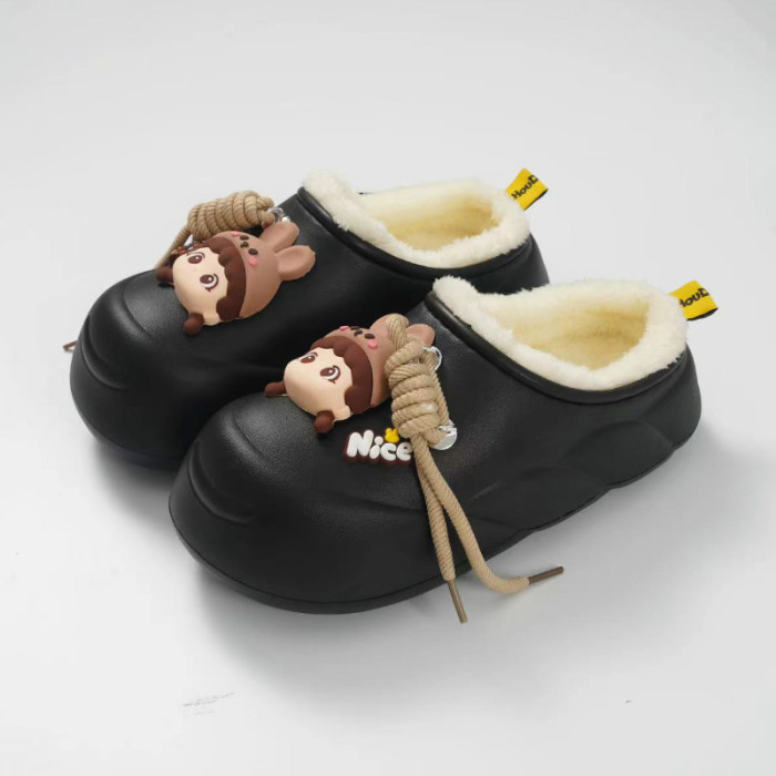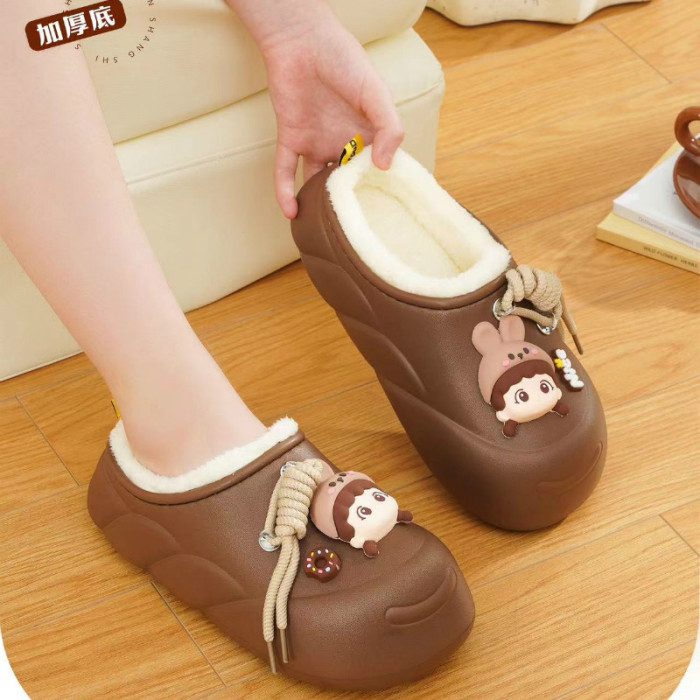 2024冬季新款加絨保暖棉拖鞋女卡通居家防滑防水包跟月子棉鞋EVA