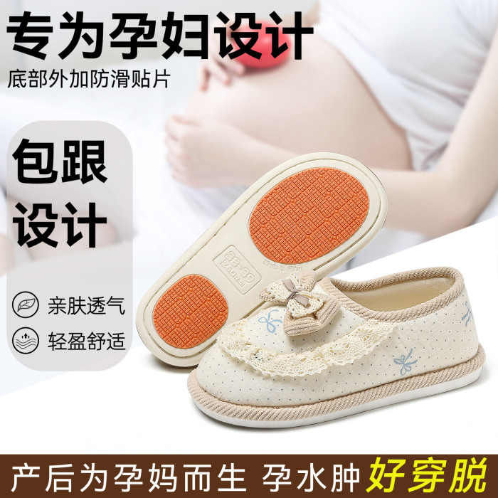 月子鞋女家居秋冬季居家室內情侶居家厚底防滑毛絨棉拖鞋女士