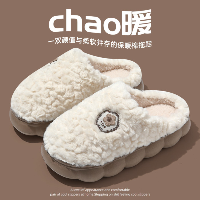 簡約棉拖鞋男秋冬季厚底家用室內保暖防滑家居情侶毛絨棉拖女