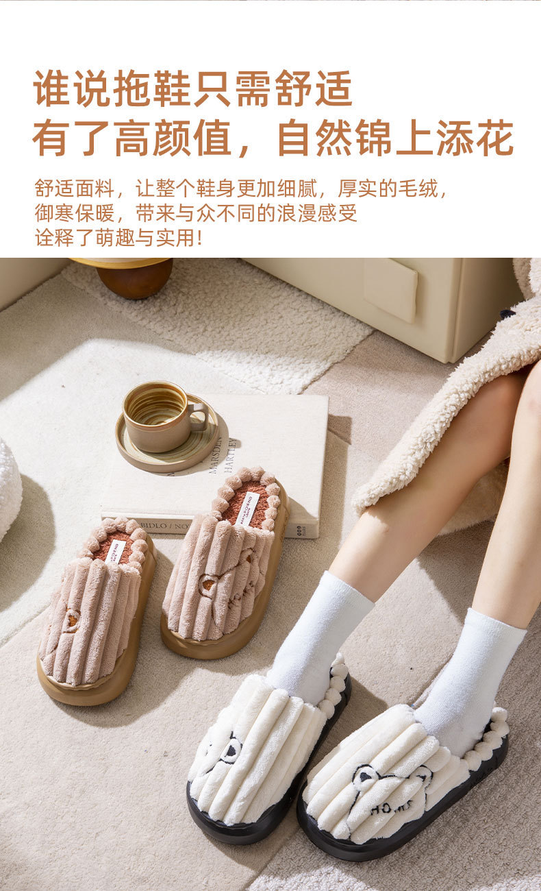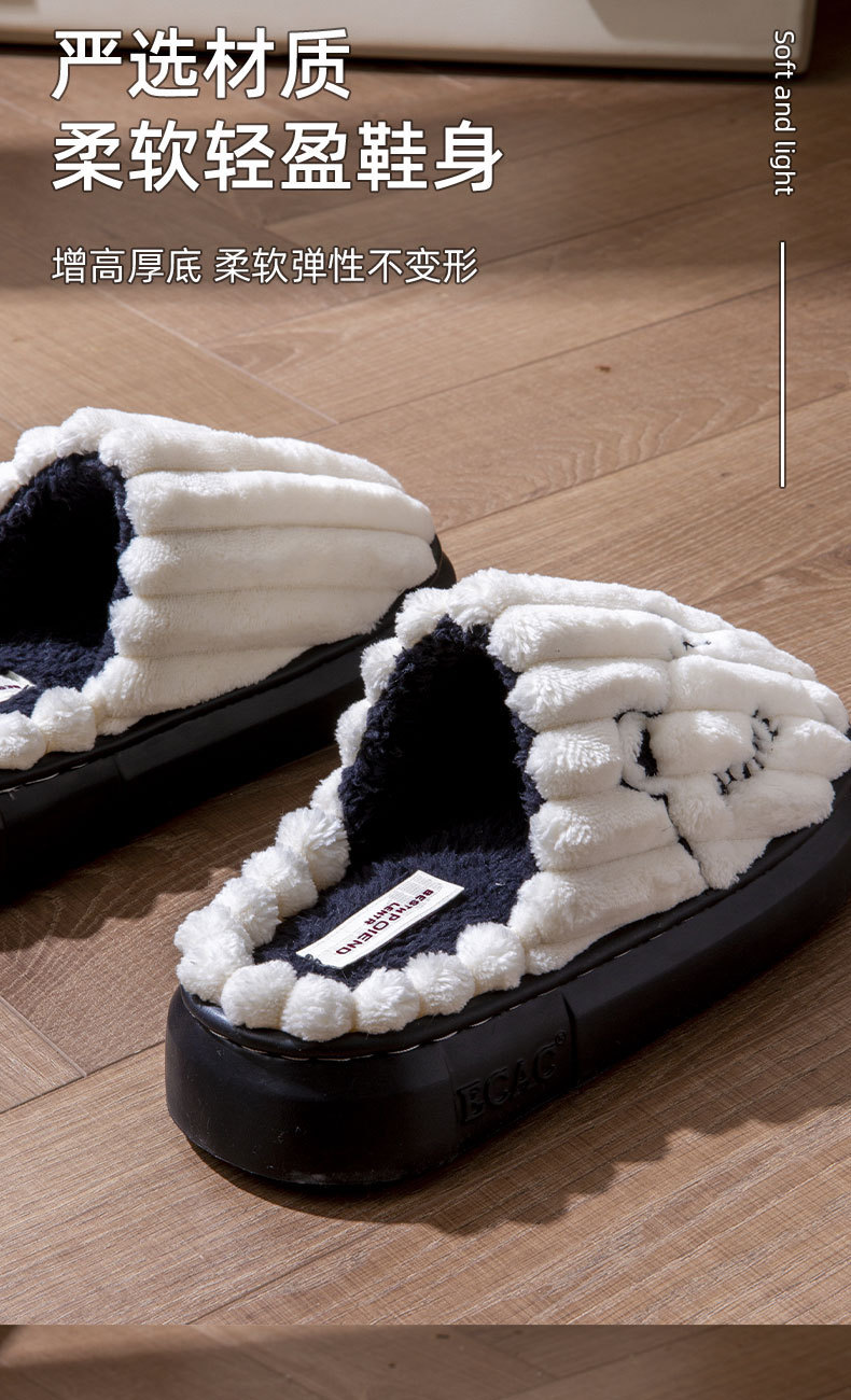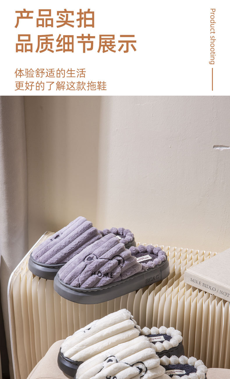 厚底棉拖鞋女秋冬季2024新款室內防滑可愛情侶家用毛絨保暖棉拖男