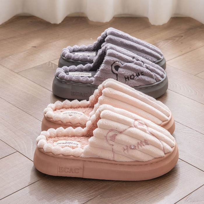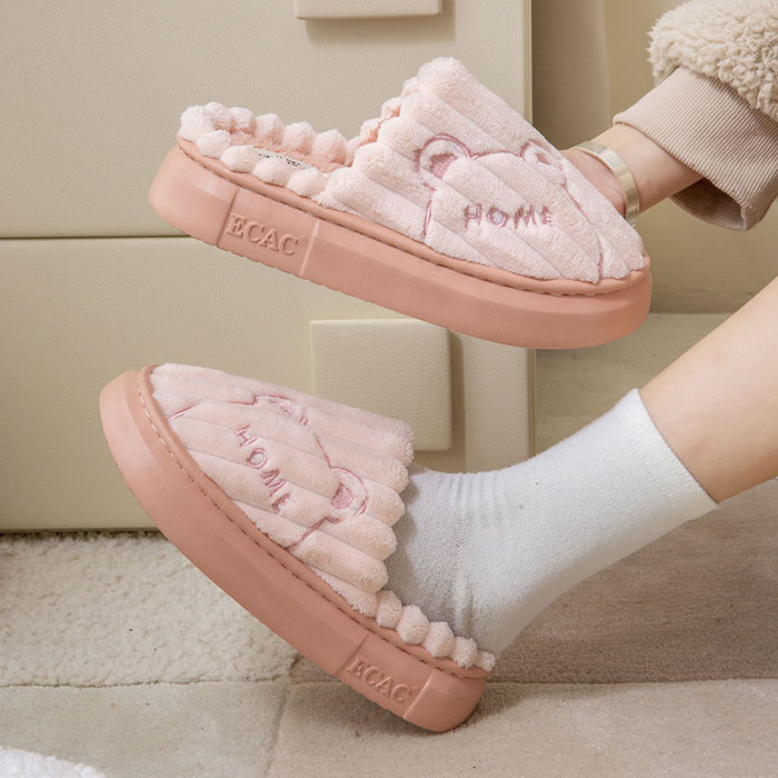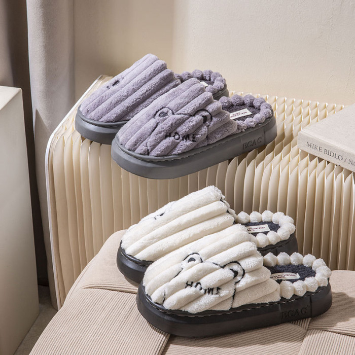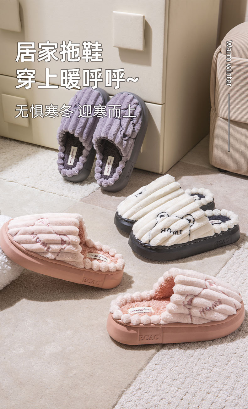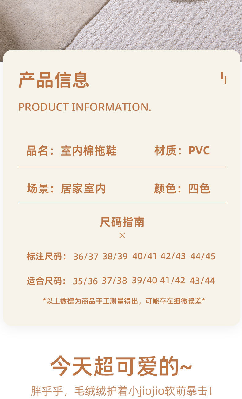 厚底棉拖鞋女秋冬季2024新款室內防滑可愛情侶家用毛絨保暖棉拖男