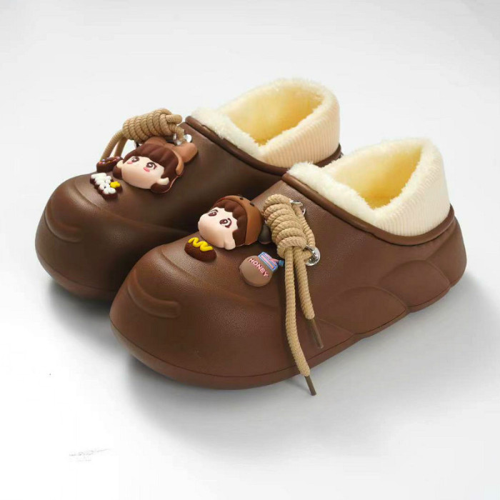 冬季軟底卡通防水棉拖鞋EVA加絨保暖881-5娃娃款加厚保暖