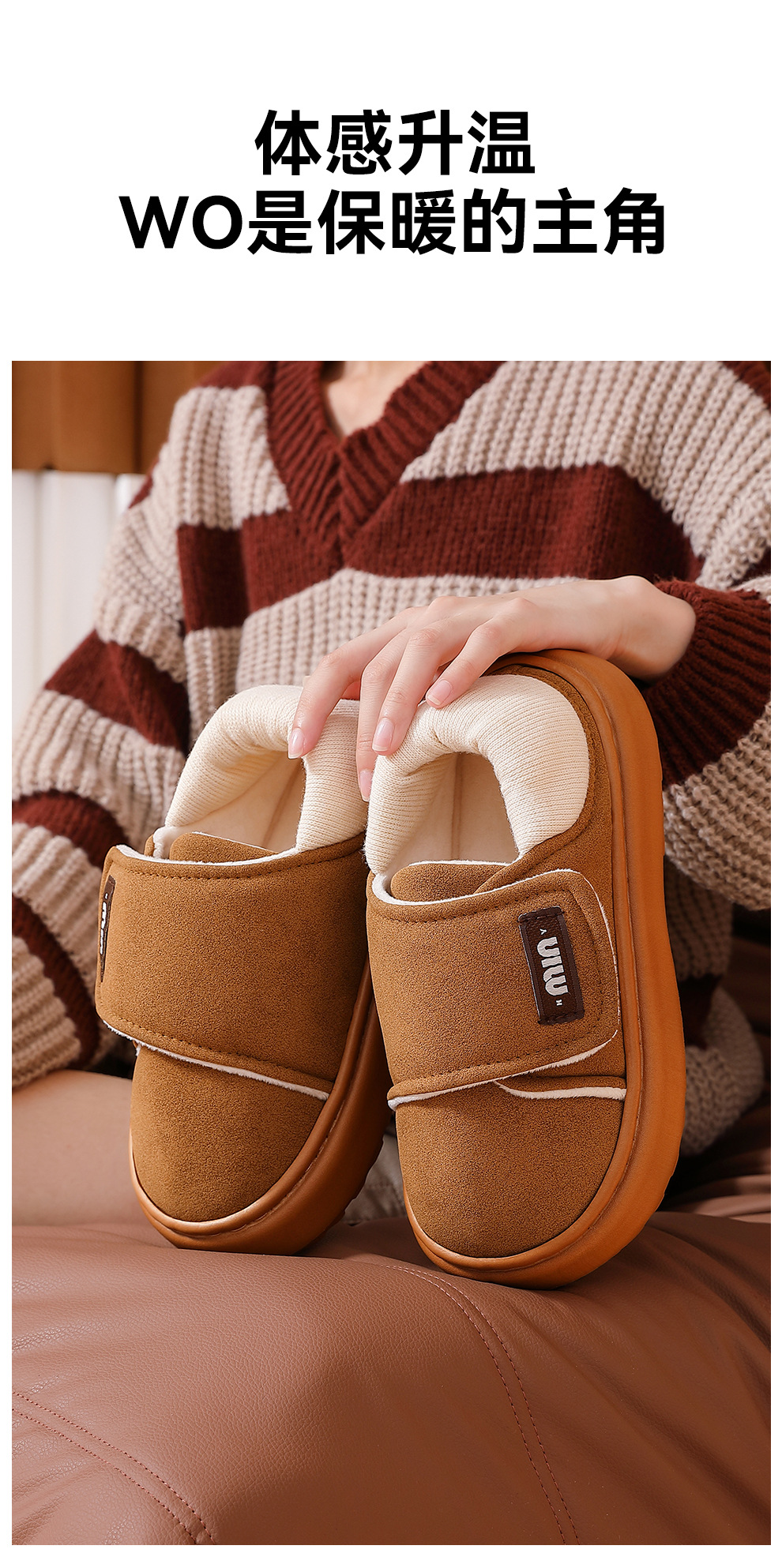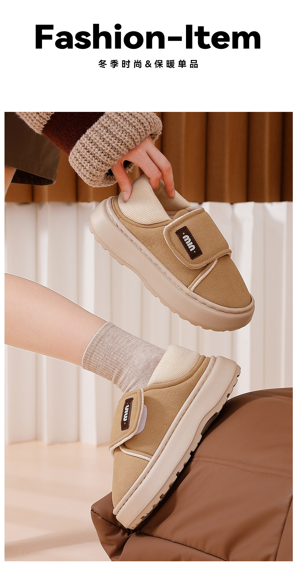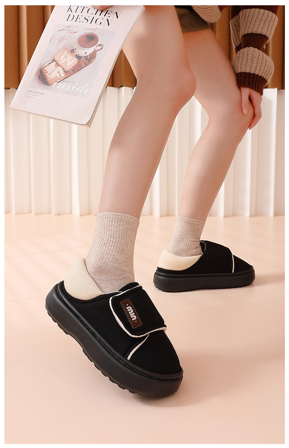 時尚女士棉鞋居家保暖月子鞋冬季室內防滑魔術貼厚底棉拖鞋女
